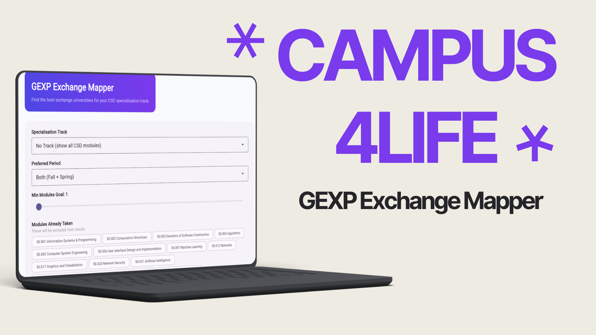Campus4Life is a web application that helps SUTD students plan their academic pathway and exchange strategically.
