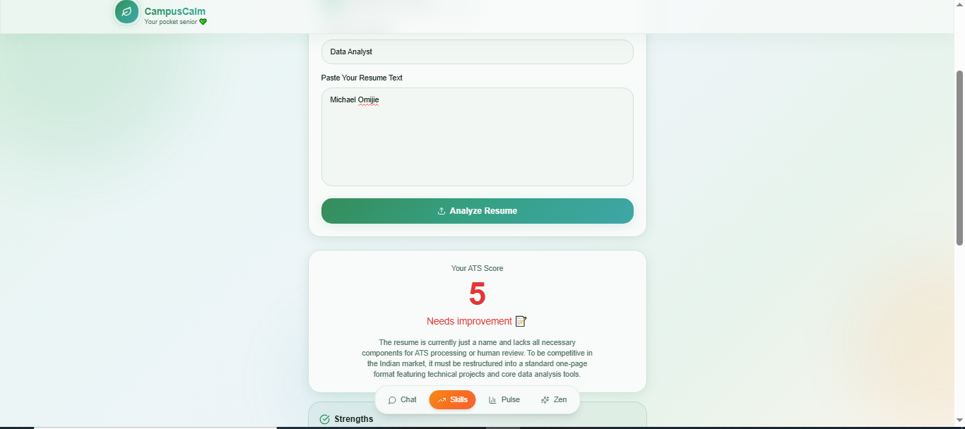 - Career tools are soulless: Resume scanners give ATS scores but don't understand why a Tier-3 student feels imposter syndrome applying to Google