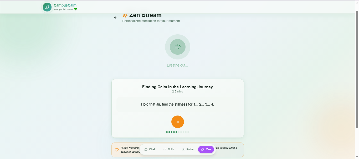Most chatbots wait for you to ask. CampusCalm actively monitors your mental state and intervenes.
