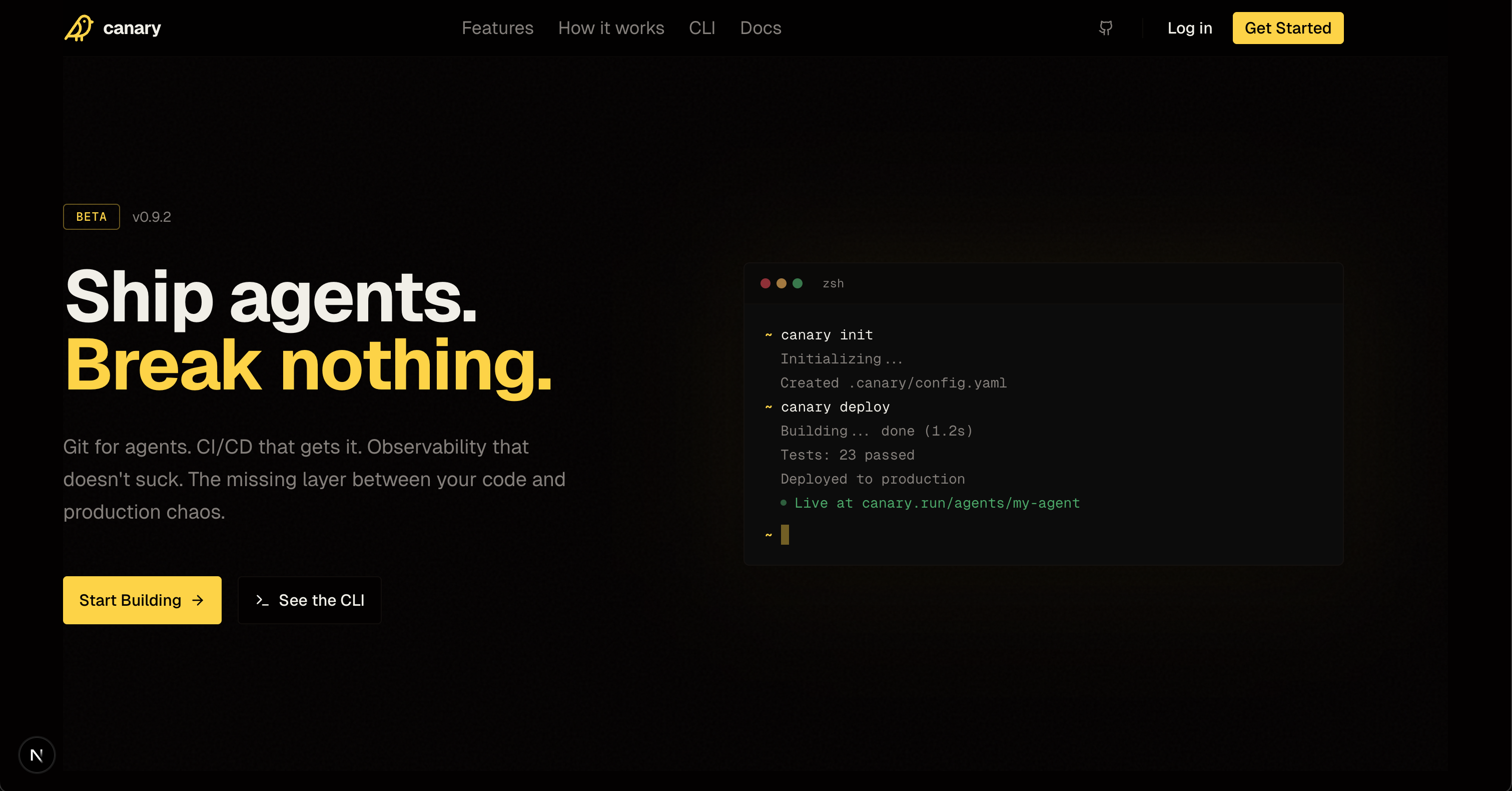 Next for Canary is turning a strong prototype into a production-ready reliability platform: complete the full canary promotion flow, add proper database migrations, and ship clear reliability analytics that prove impact (like fewer incidents and faster rollback recovery). From there, strengthen evals with deeper regression/adversarial testing and add enterprise controls like approvals, access control, and alerting. The goal is simple: make Canary the standard way teams safely ship and operate AI agents in production.