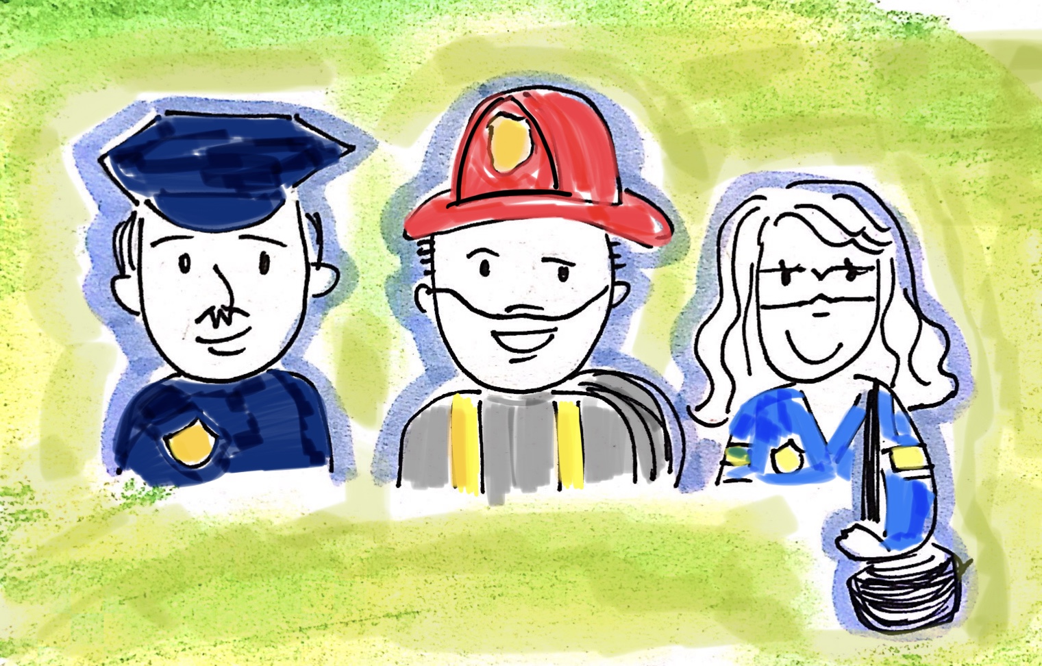 The book starts with an age-appropriate, but brief, explanation of the virus, how it transmits, and how serious it can become. Captain Corona tells a group of frightened children that there are so many helpers and then takes them on a flying tour to visit the 19 COVID Warriors: everything from healthcare workers to first responders to custodians, to event planners to delivery people.