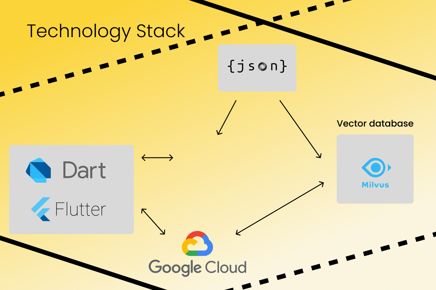 We kicked off by defining Recall’s key features and objectives, followed by UI design in Figma. Our plan for implementation was to use Flutter/Dart for app building and host the data locally. Google Cloud Platform and Google Maps SDK would have been used for mapping, Python for photo metadata, OpenAI API for data embedding and clustering, and Milvus for the Recall Bot chatbot function.
