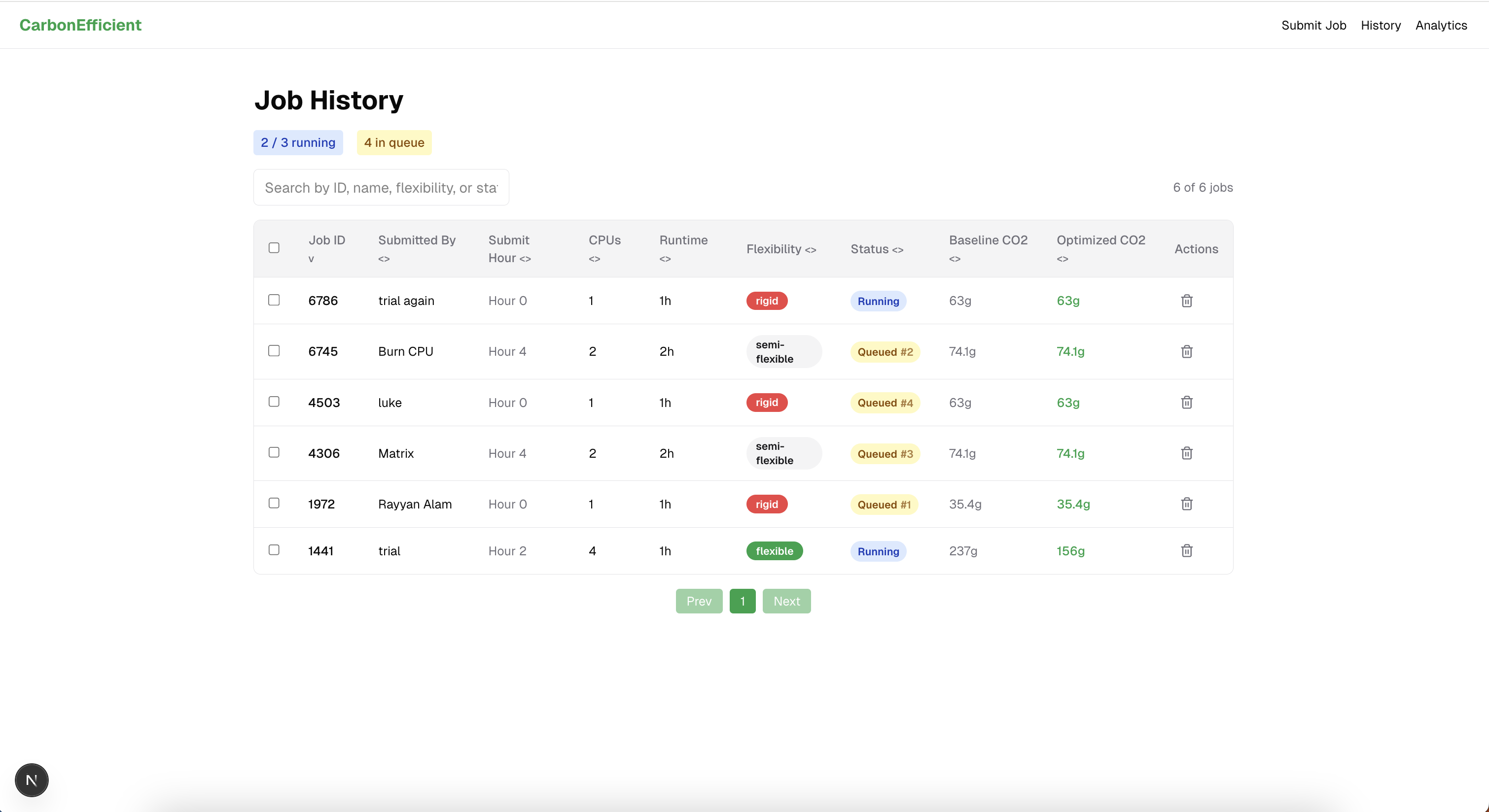 We built a mathematically sound, fully functional temporal LCA carbon estimator that moves beyond theoretical sustainability into actual, operational load-shifting. We successfully implemented a real-time simulation engine that handles queueing, concurrency limits, and capacity-aware scheduling. We maintained a clean separation of concerns (decoupled the frontend and backend), allowing us to deploy a live, interactive web app with built-in explainability. We overcame a 50% reduction in team size to deliver a complete, highly polished project that directly addresses our 2030 carbon-neutrality goals.