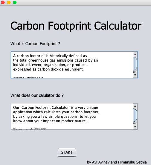 It gets inputs of basic lifestyle information, computes it into a carbon footprint number and shows differences from the US average and how to improve your own carbon footprint.