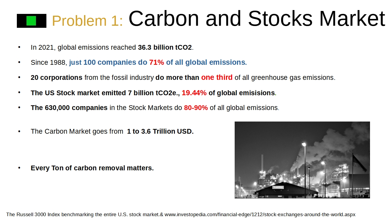 Carbon is new emerging market, and It is not easy to certify and sell carbon credits, and we are making It easy for people and companies, also to monitor their carbon usage, as key performance indicators for sustainability.