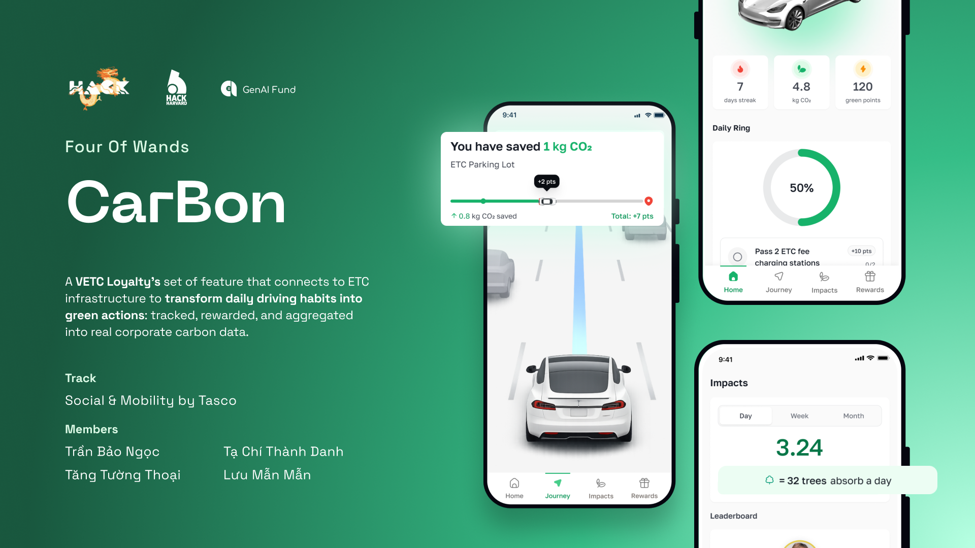CarBon is a set of features built on top of Tasco's VETC loyalty infrastructure that transforms daily driving habits into tracked, rewarded, and aggregated green actions.