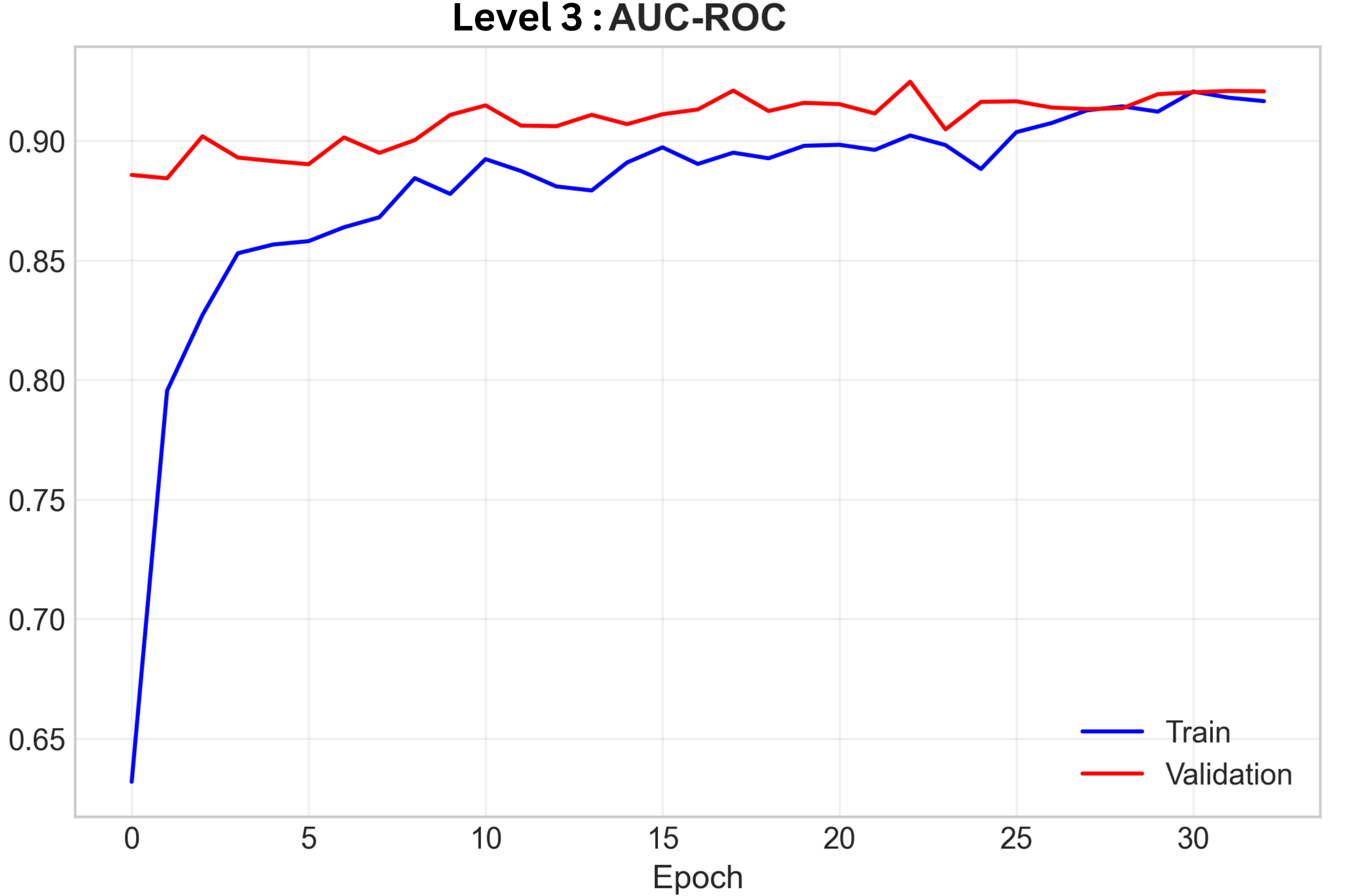 - 85.23% sensitivity at Level 1, exceeding the 85% clinical target (95% CI: 0.8432–0.8609)