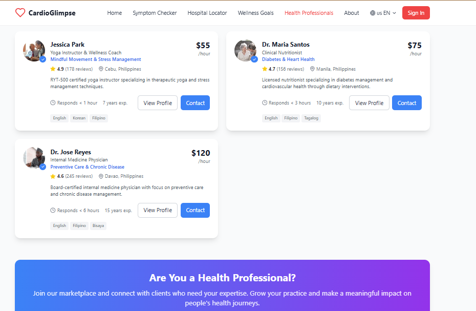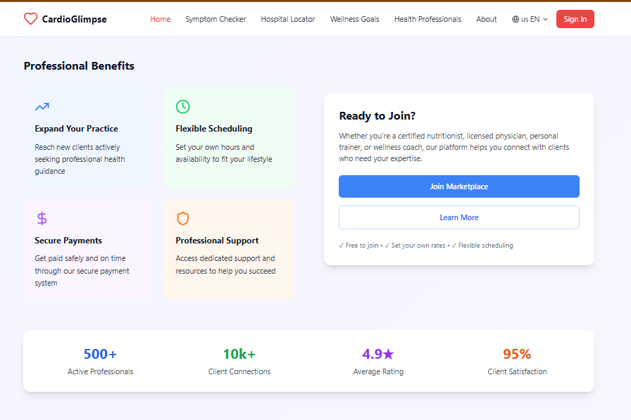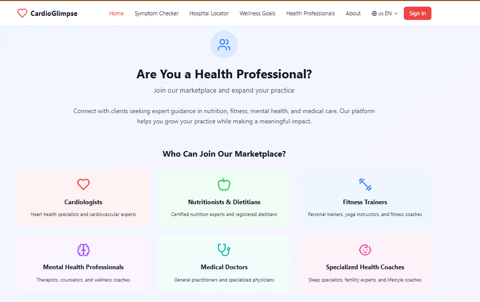 This holistic integration—from symptom understanding to emergency response, preventive care to professional connection—makes CardioGlimpse a distinct and powerful solution. No existing app covers all these pillars together.