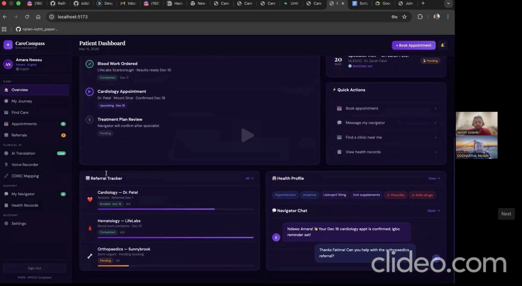 Care Compass was inspired by a major gap in healthcare: the system is still poorly digitized from the patient navigation side. For many newcomers, international students, and multicultural families in the GTA, healthcare is fragmented, repetitive, and difficult to navigate. Patients often have to explain their situation multiple times, manage referrals manually, face language barriers, and figure out the system on their own. We wanted to build something that improves patient experience while also reducing inefficiencies for clinics and “Uber for navigating healthcare.”