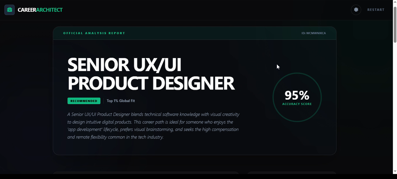 We wanted to build something that feels less like a test and more like a mentor. We were inspired to create Career Architect to bridge the gap between a person's raw interests and their professional future, ensuring that no one settles for a career they don't love simply because they didn't know the roadmap to get there.