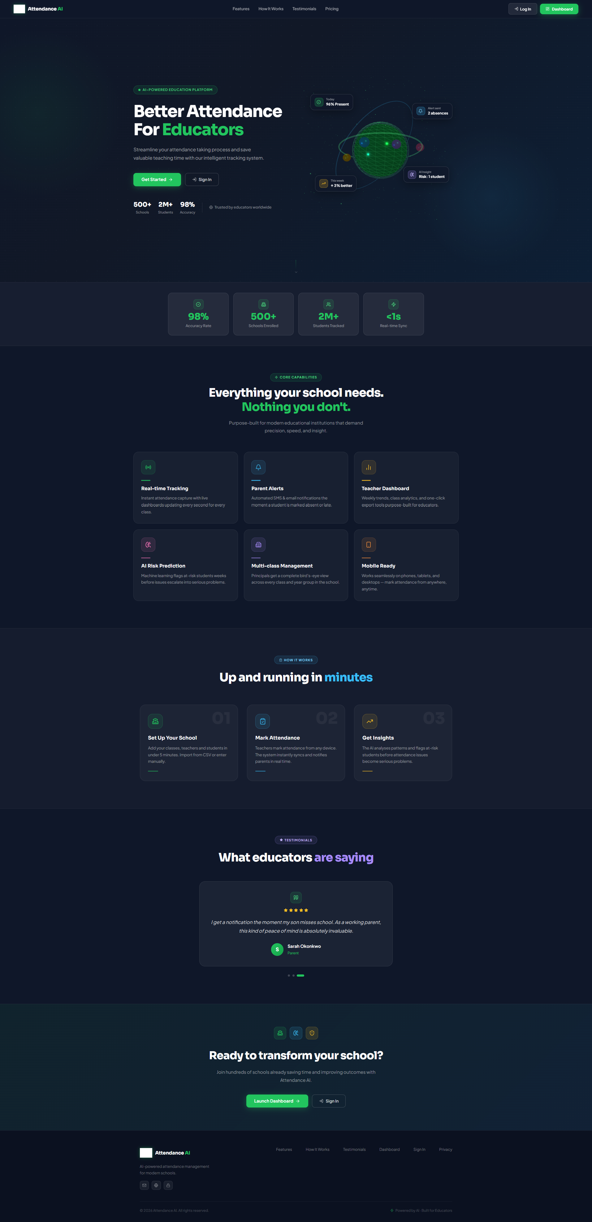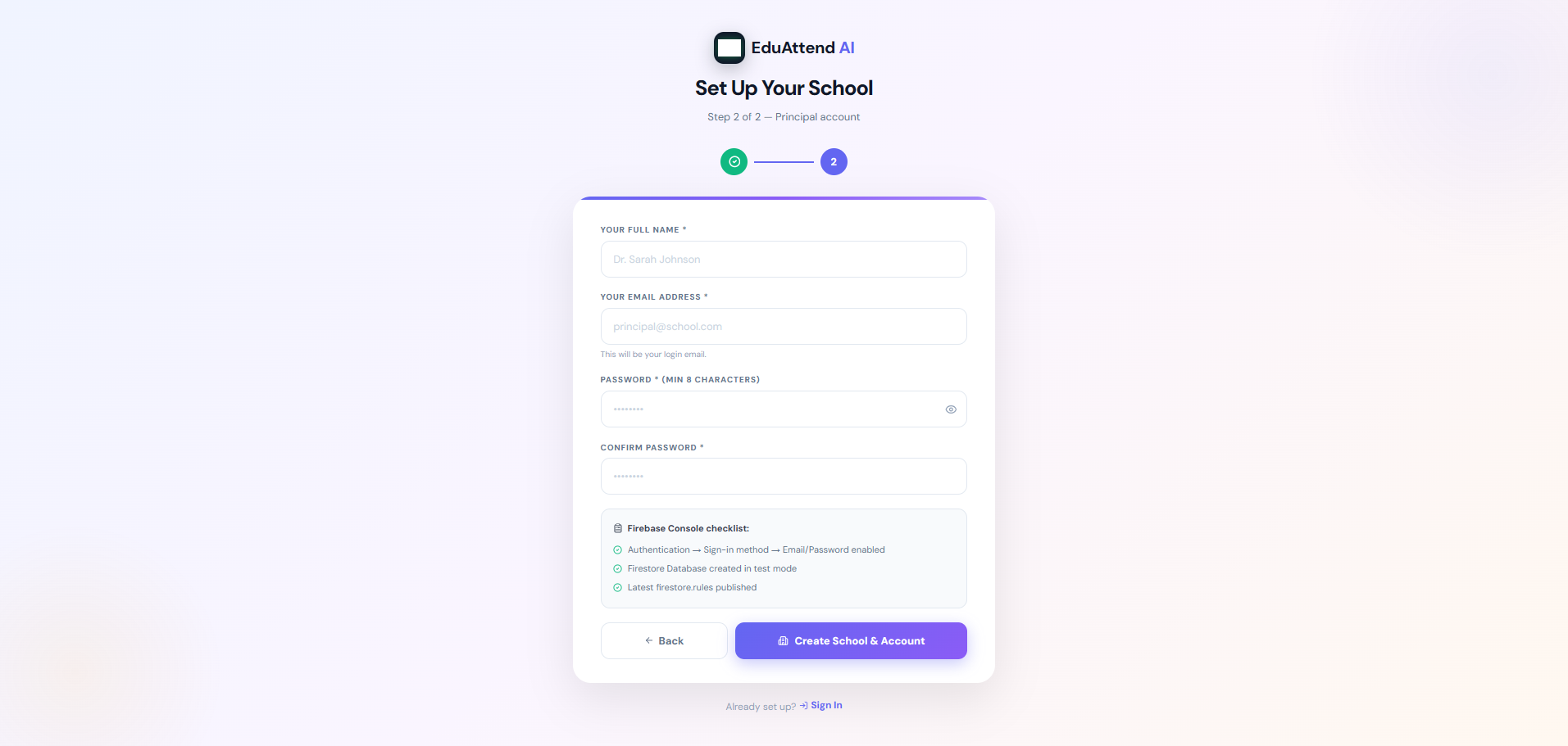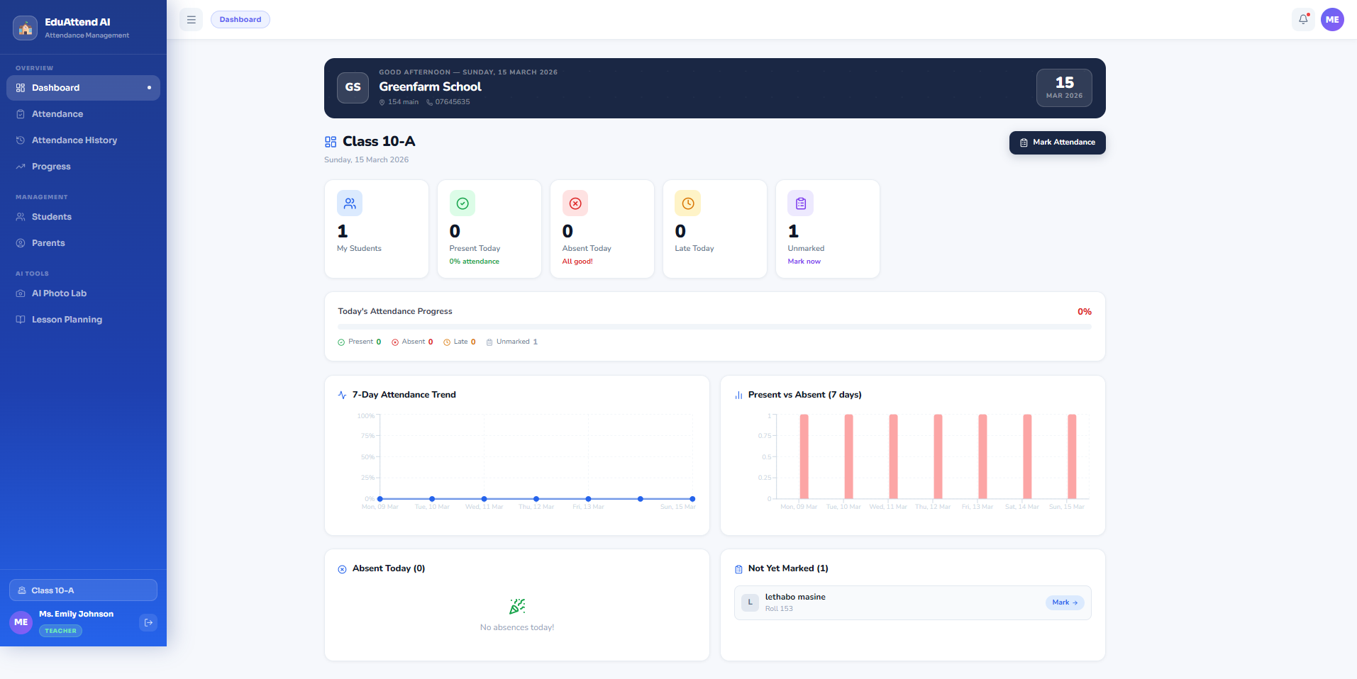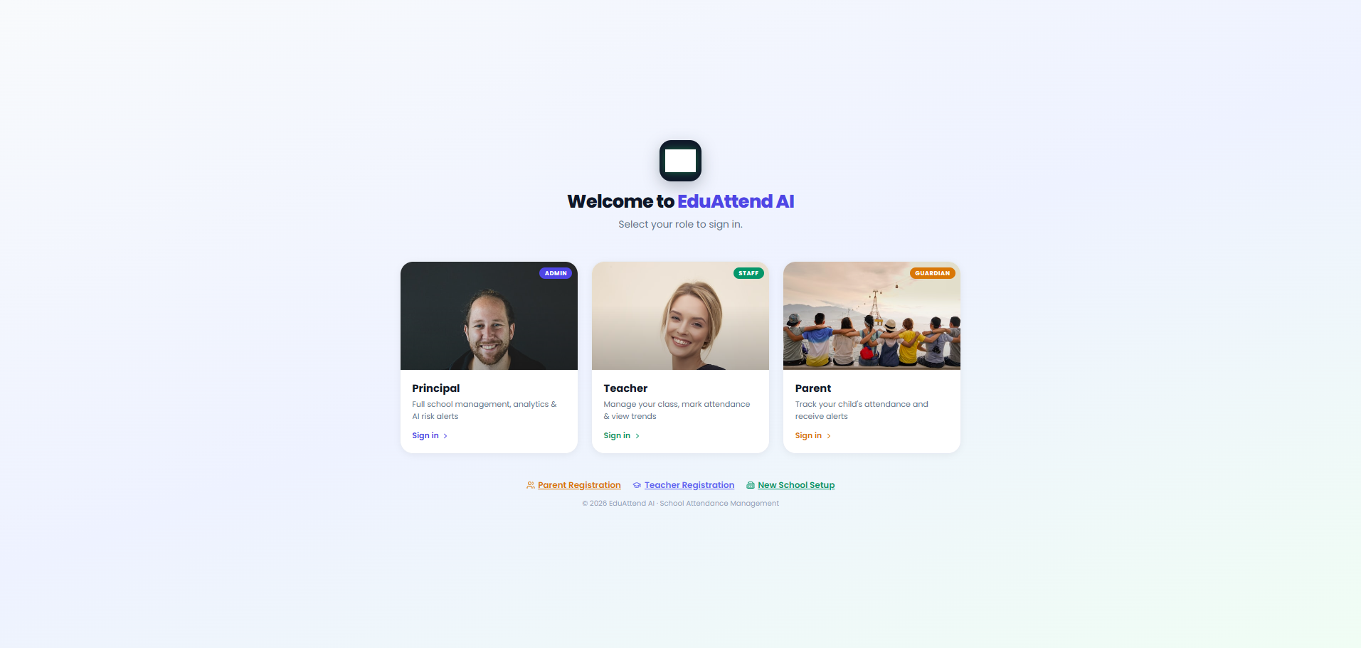 EduAttend AI is a full-stack school attendance management platform for principals, teachers, and parents: