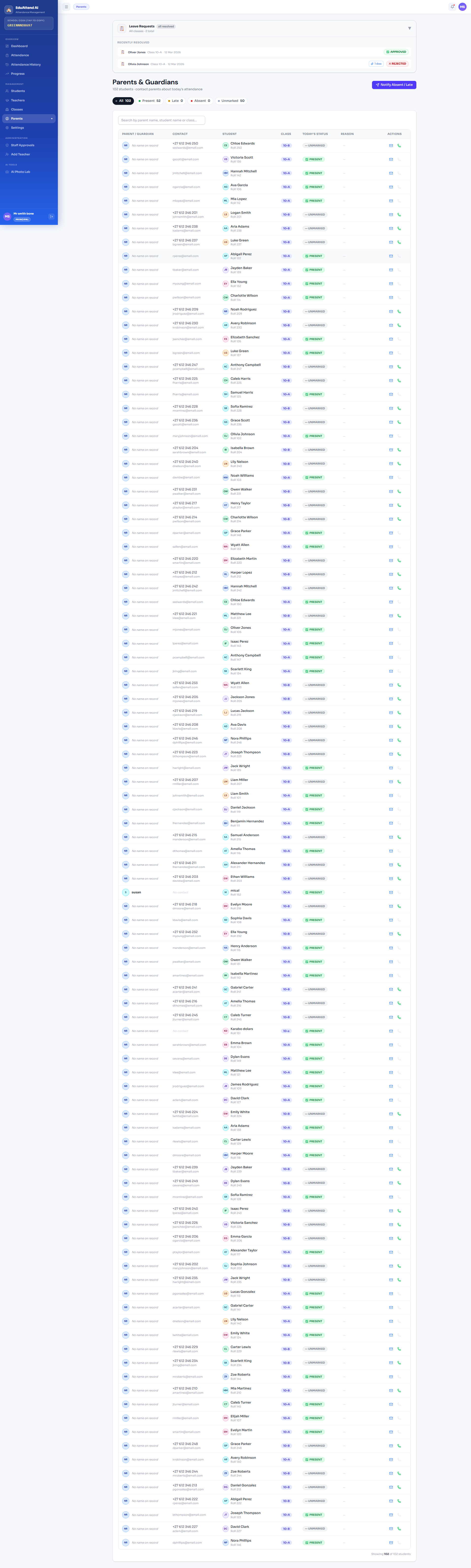 - Parent portal — parents see their child's attendance history and receive instant absence notifications