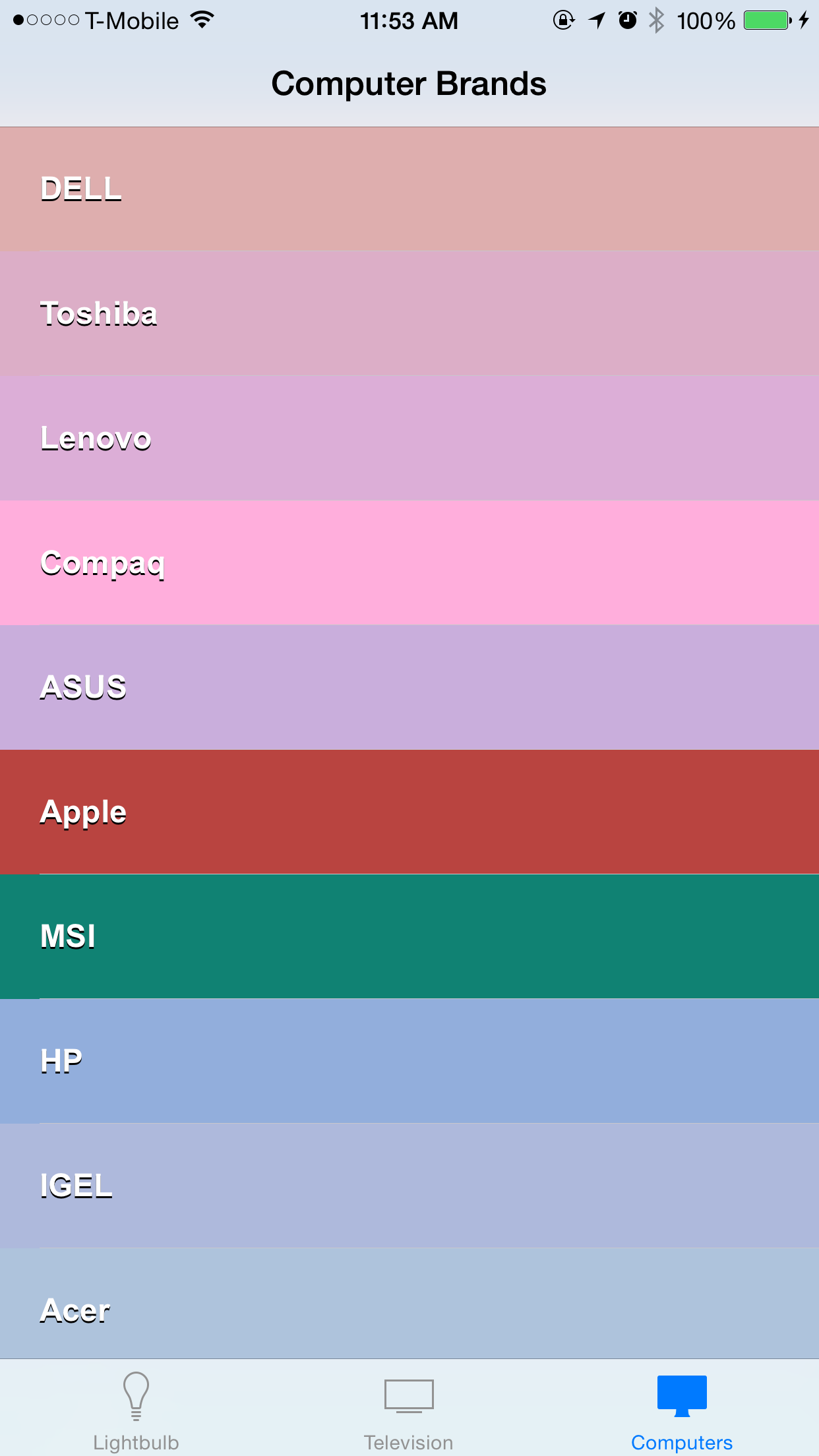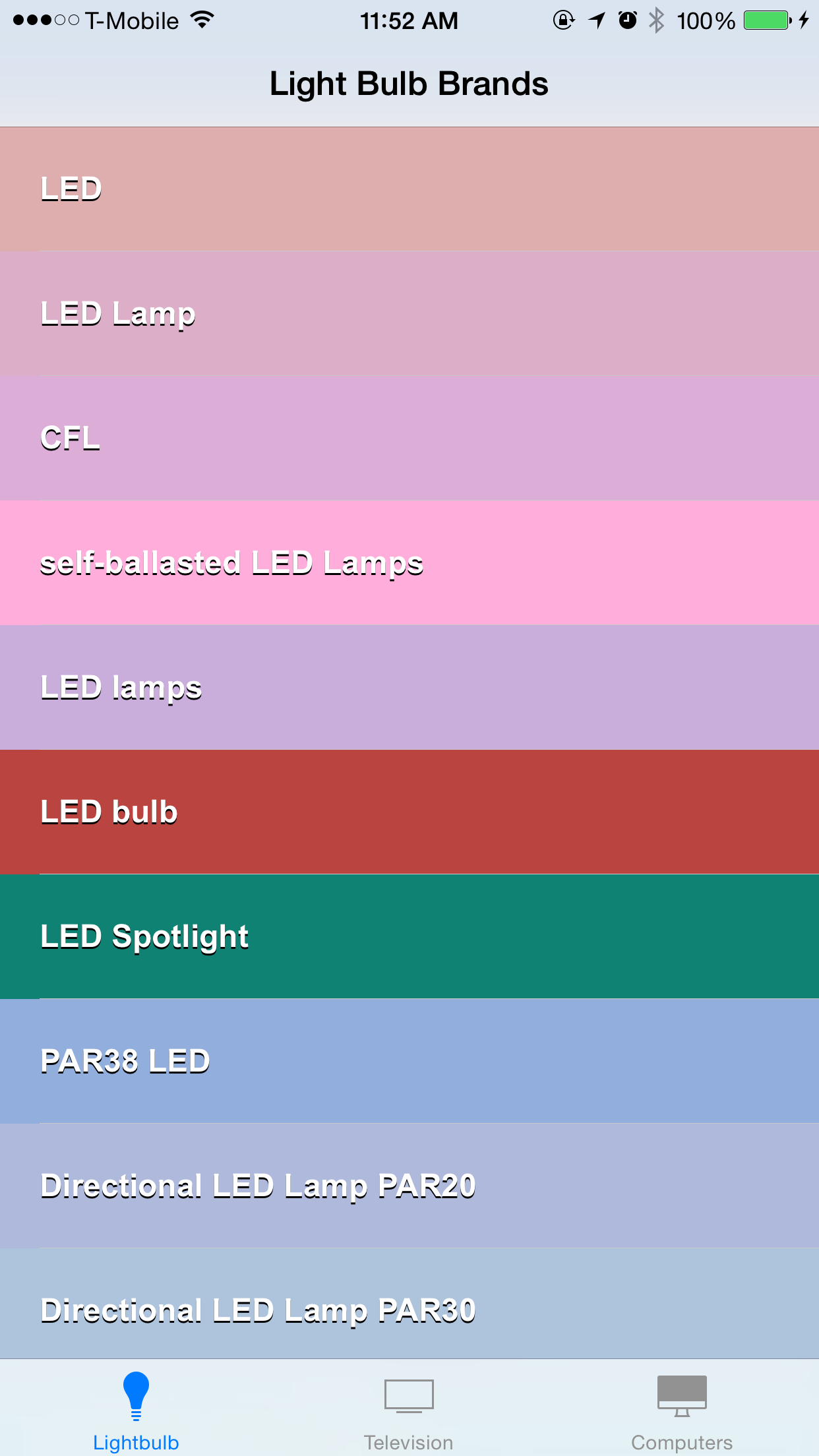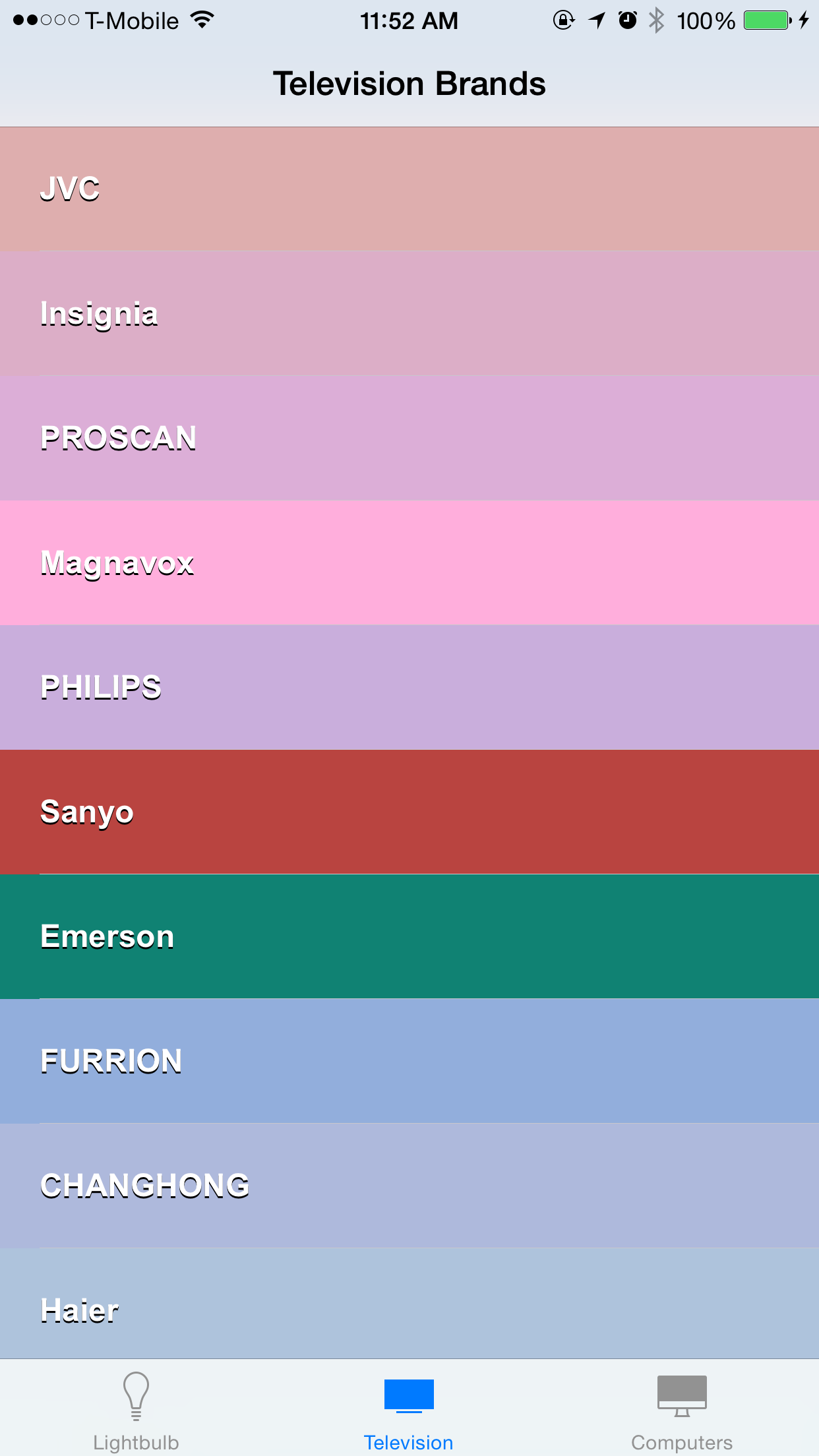 I have finished all three view controller that would display infos for TVs, Computers, and Lightbulbs.
