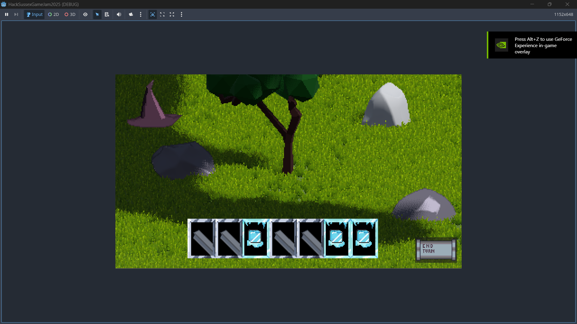 We used arrays for the deck and hand and made instances of each card depending on what was drawn, we also had a 3d scene that was pixelated and had outlines added using shaders through a subviewport as well as a shader for cloud shadows on the scene directly.