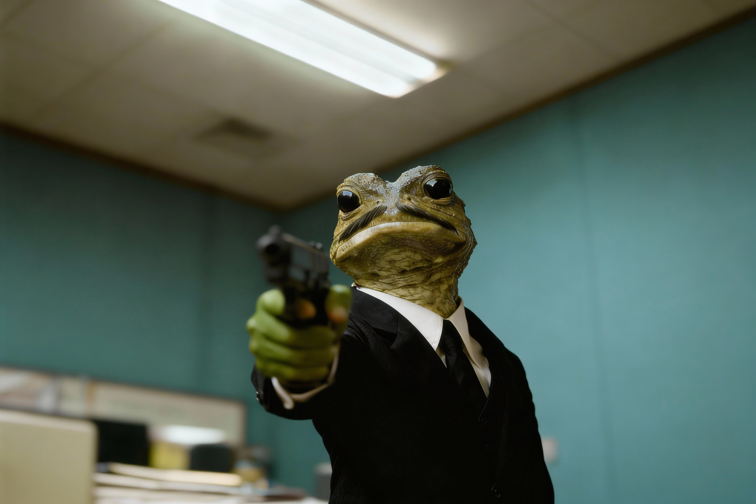 I’ve always been drawn to retro, dystopian, and grotesque settings, where monotony hides something absurd or deeply human. A big inspiration for the tone and rhythm came from Severance, with its sterile corporate spaces and dark humor. I deliberately kept the frogs emotionless, letting their eyes and the scene composition express everything, I find that restrained, minimal expressiveness makes the absurdity even funnier.