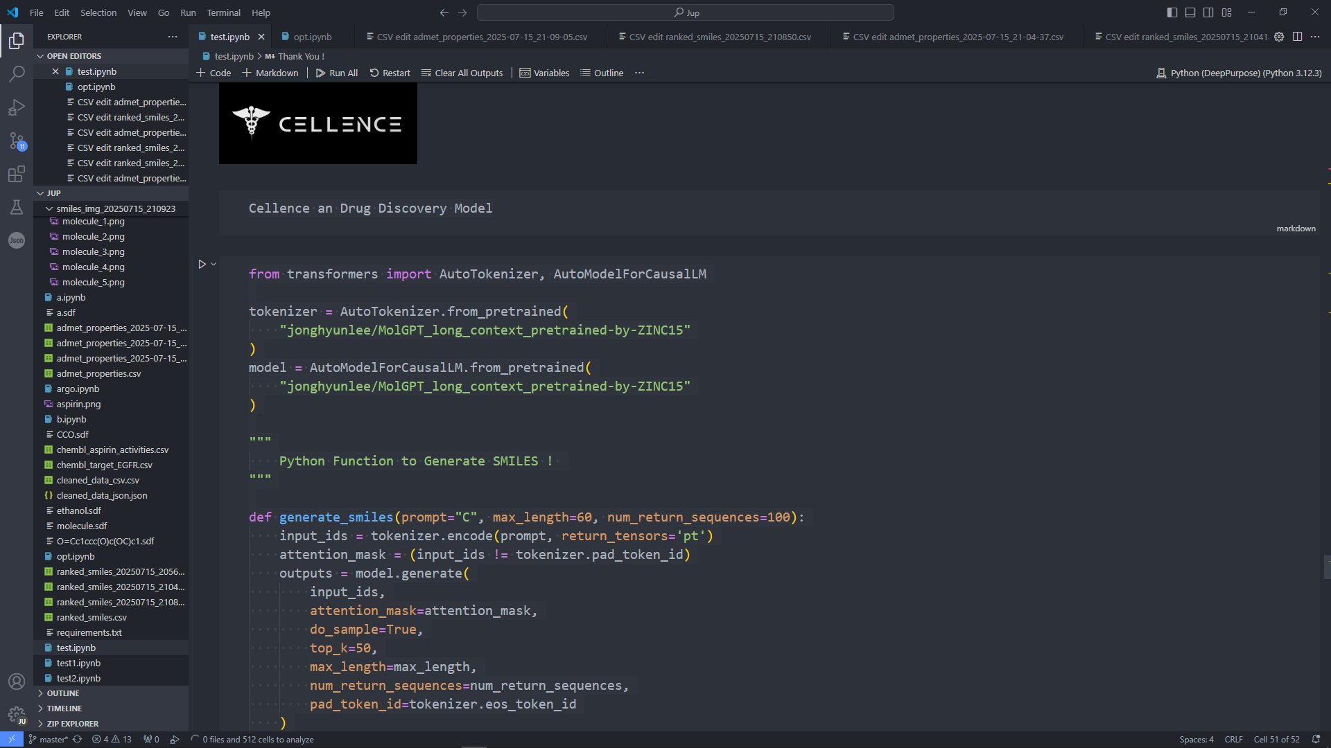 Using advance TamGen model and other models and as I have made it in my Local Machine and made it using many thousands of prams and used Chemberta and use Molecule dataset from Zinc, Drug dataset from and train My personalized model and make a Research paper