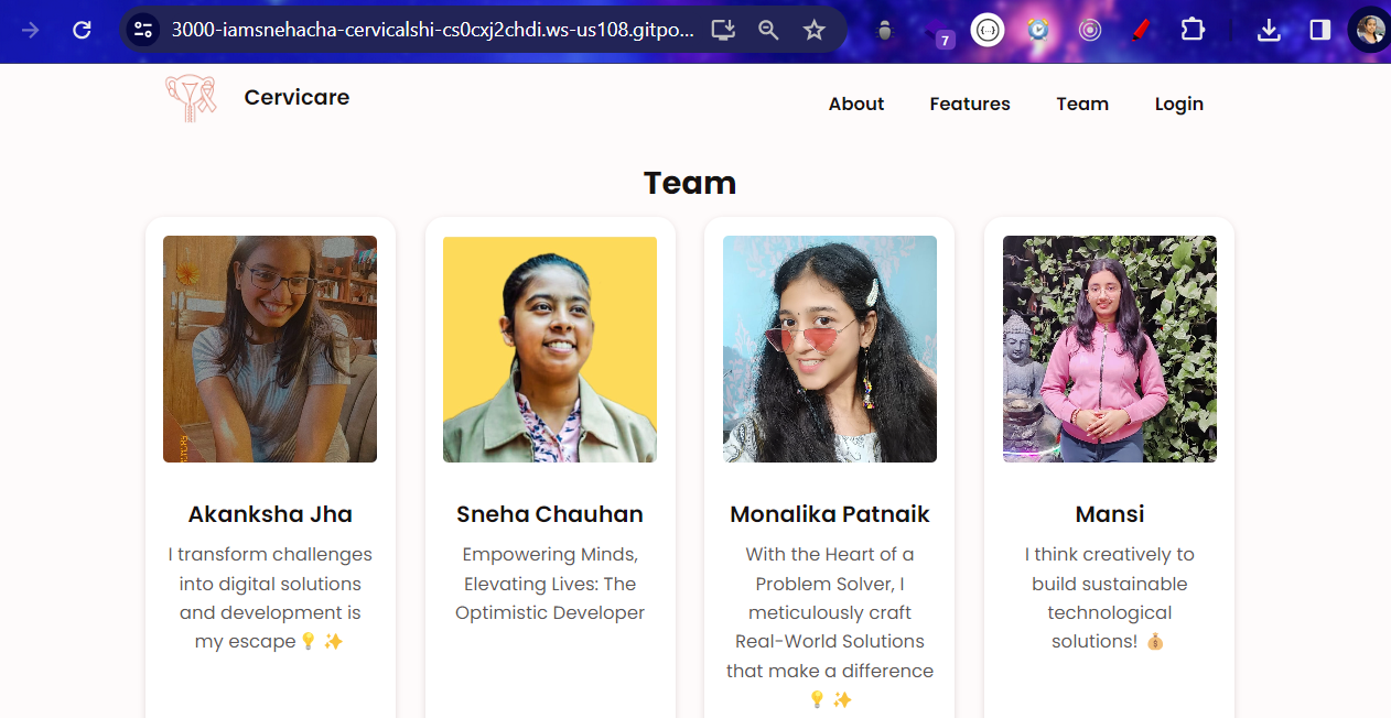 Driven by her own experiences and a deep desire to prevent others from feeling the same sense of isolation and shame, Rajni embarked on a mission to create CerviCare. With the support of healthcare professionals, researchers, and tech experts, she envisioned a web app that would serve as a beacon of hope and support for women facing similar challenges.