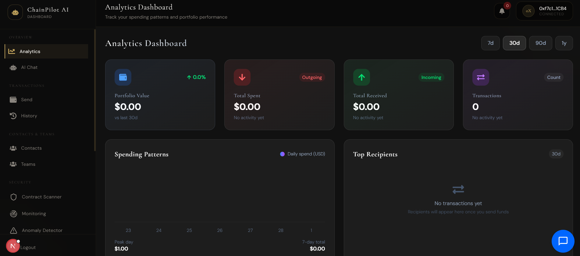 Real-time portfolio insights, spending trends, and blockchain activity tracking.