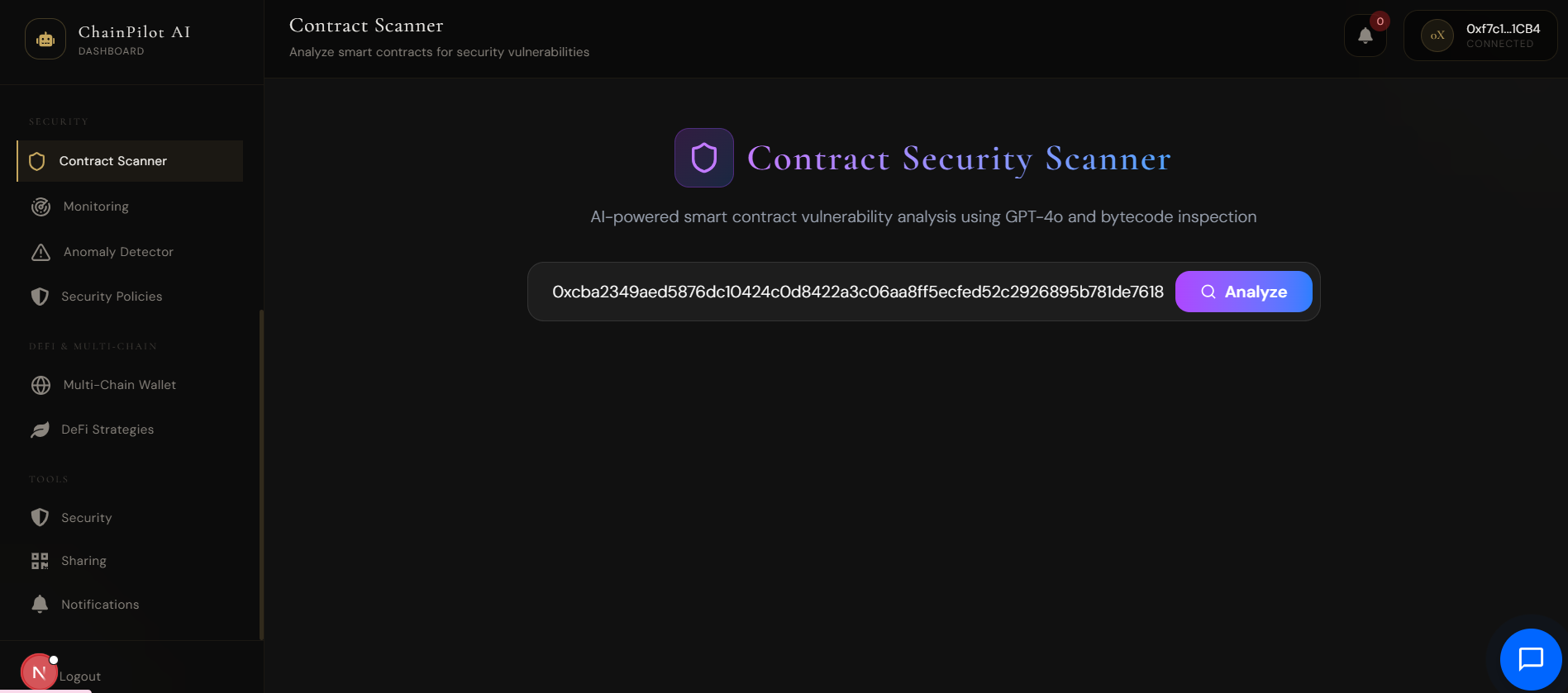 AI-powered smart contract analysis with risk scoring and on-chain audit proof.