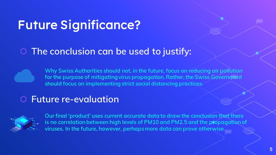 We believe this research is important, because it allows us to statistically determine whether Swiss authorities should also focus on reducing air pollution in Swiss skies to help mitigate the spread of the virus, alongside social distancing.