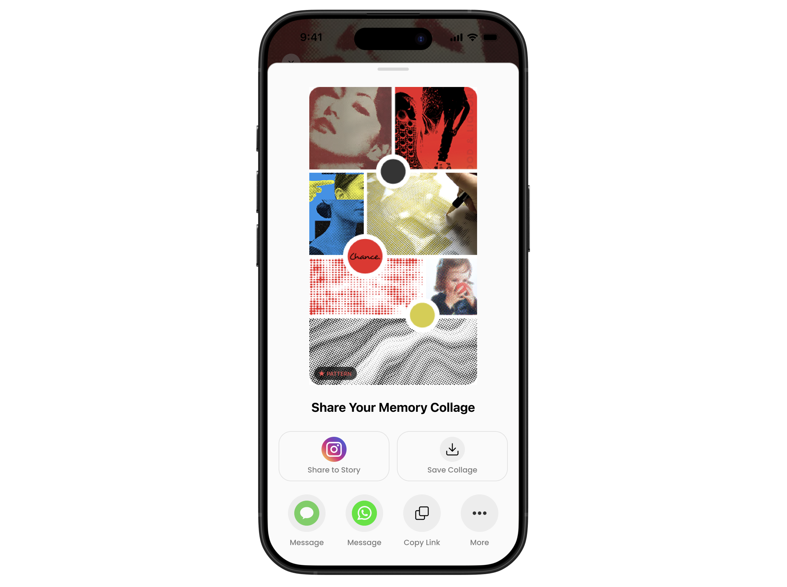 Instead of treating these as three separate design challenges, we found the thread connecting them: Chance can see patterns in what you love and notice, but it isn't highlighted in its features. We wanted to approach the design by unifying memory, loading, and sharing, making the user experience feel engaging, personal, and worthy of sharing with others.