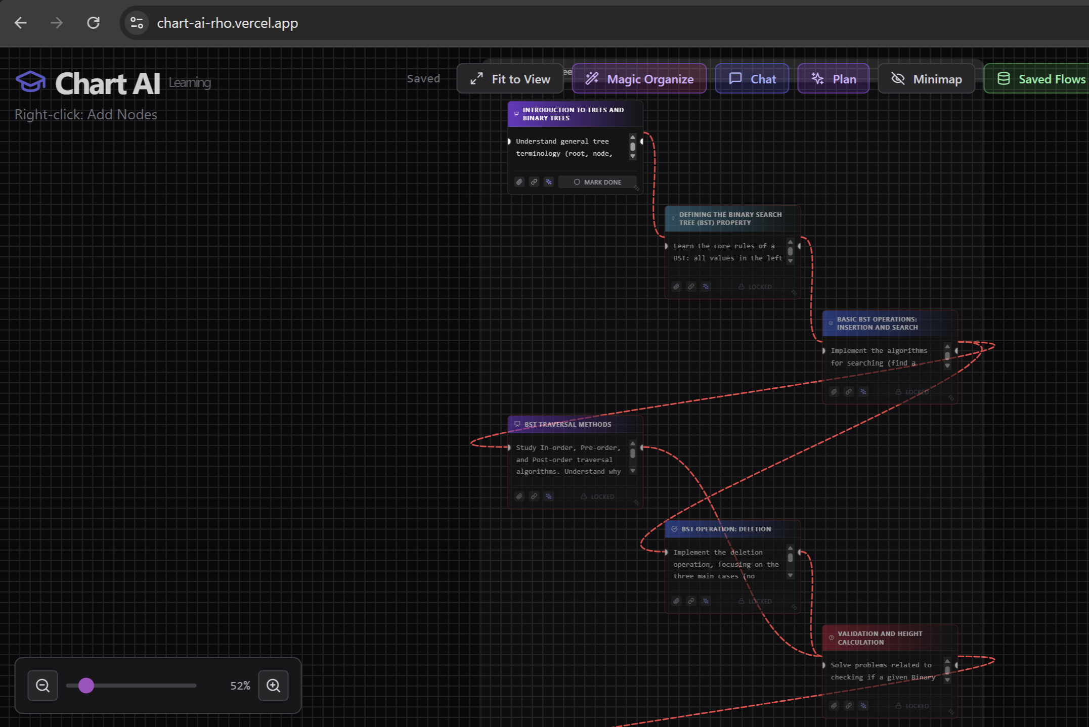 Chart-AI is an AI-powered visual learning flow builder that helps users create, organize, and explore knowledge through connected nodes.