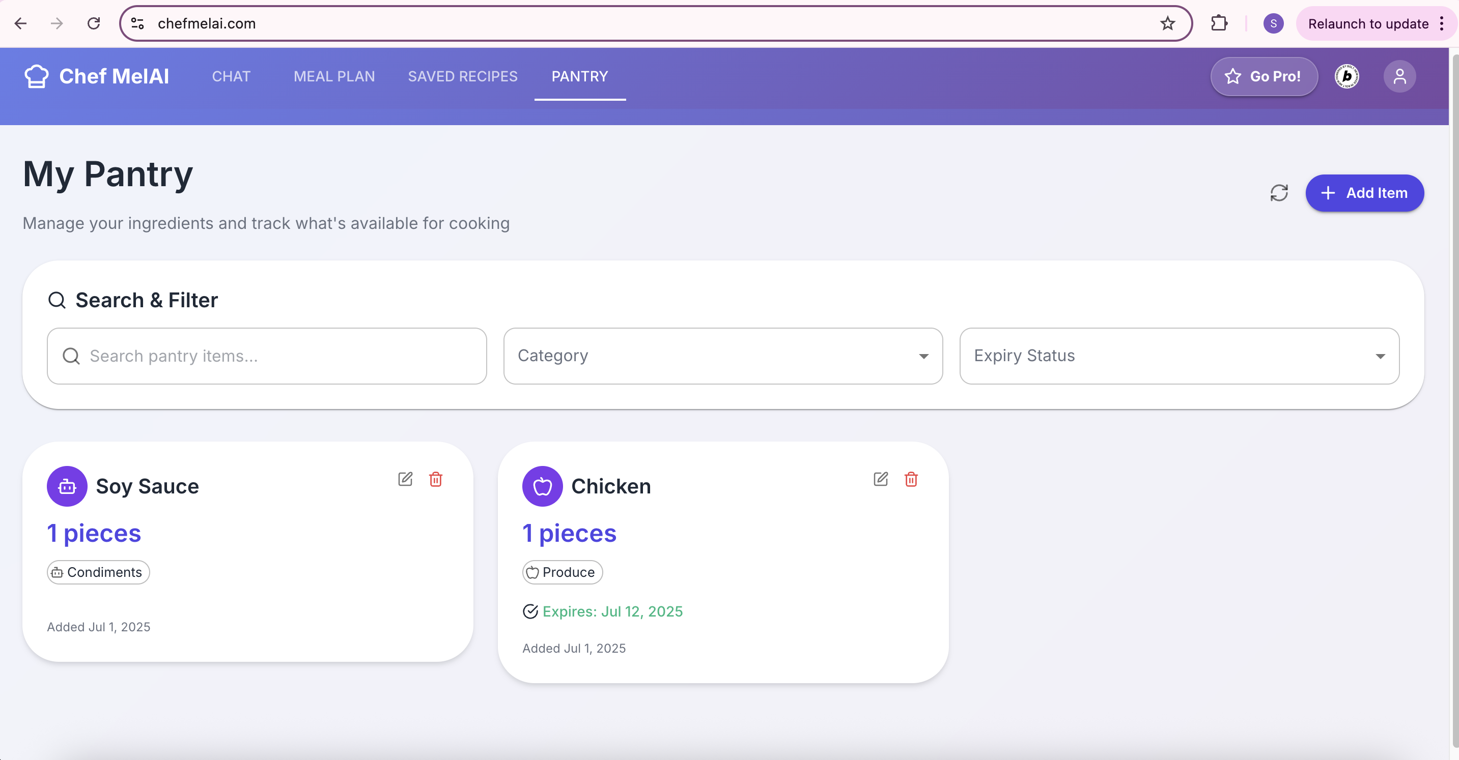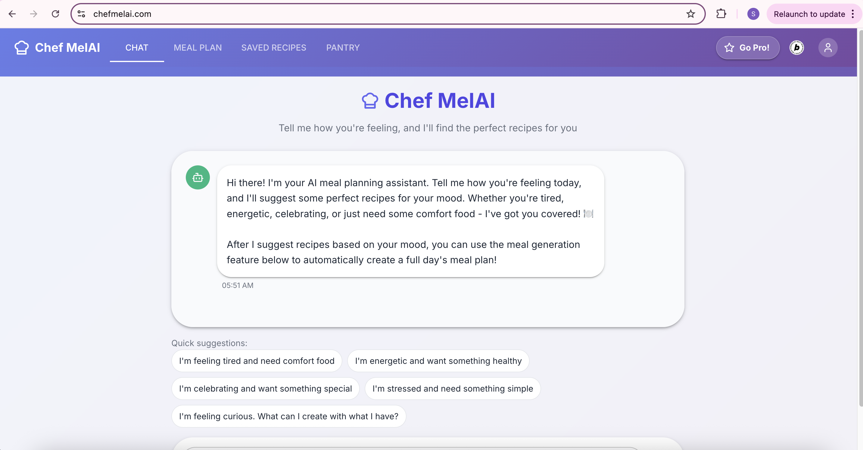 Users can describe how they're feeling, and the AI suggests appropriate recipes.Pantry-Based Recommendations