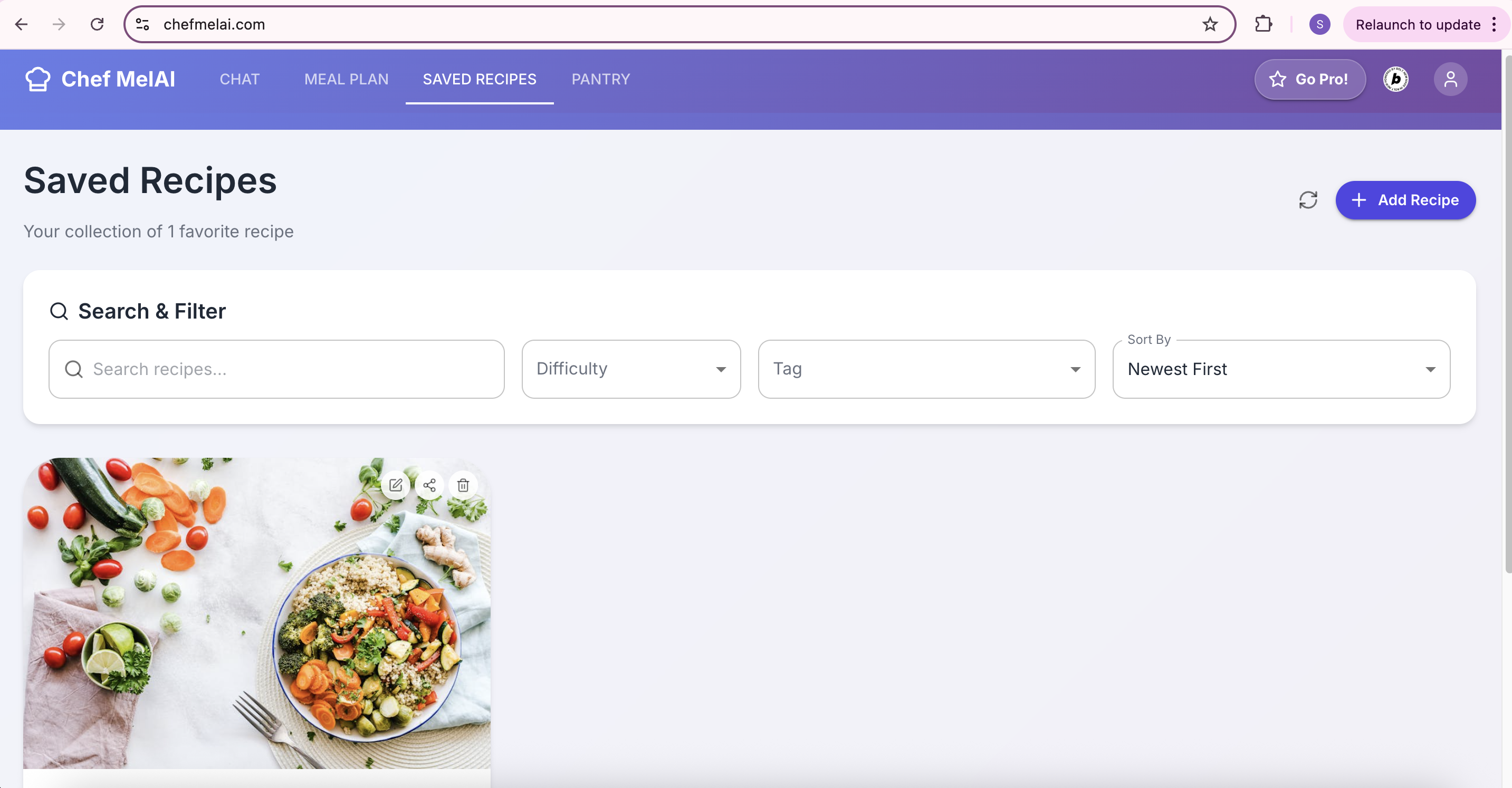 Users can save recipes from AI suggestions or add their own custom recipes.Advanced Recipe Editor