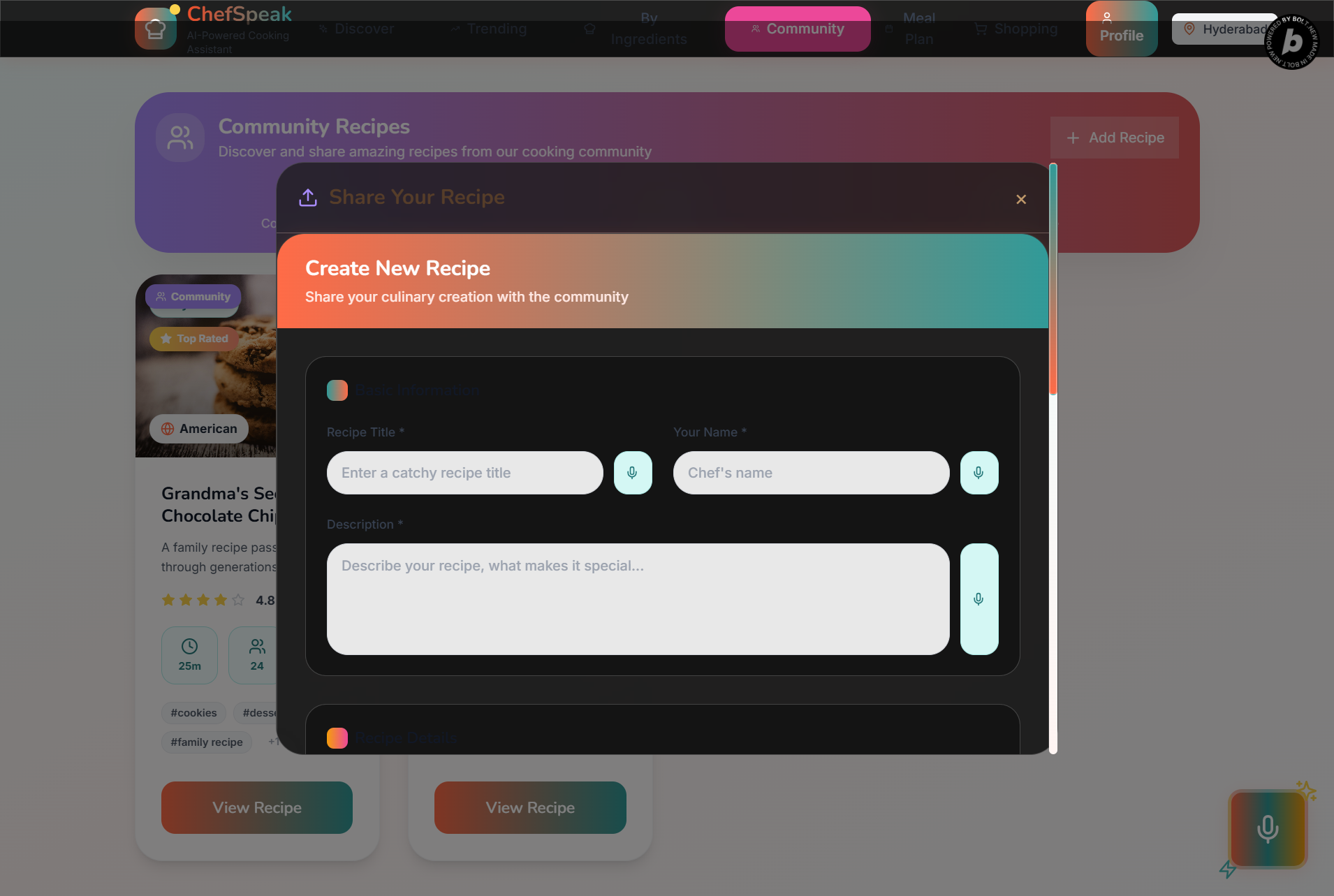 - 👥 Community Features: User profiles, favorites, and recipe sharing