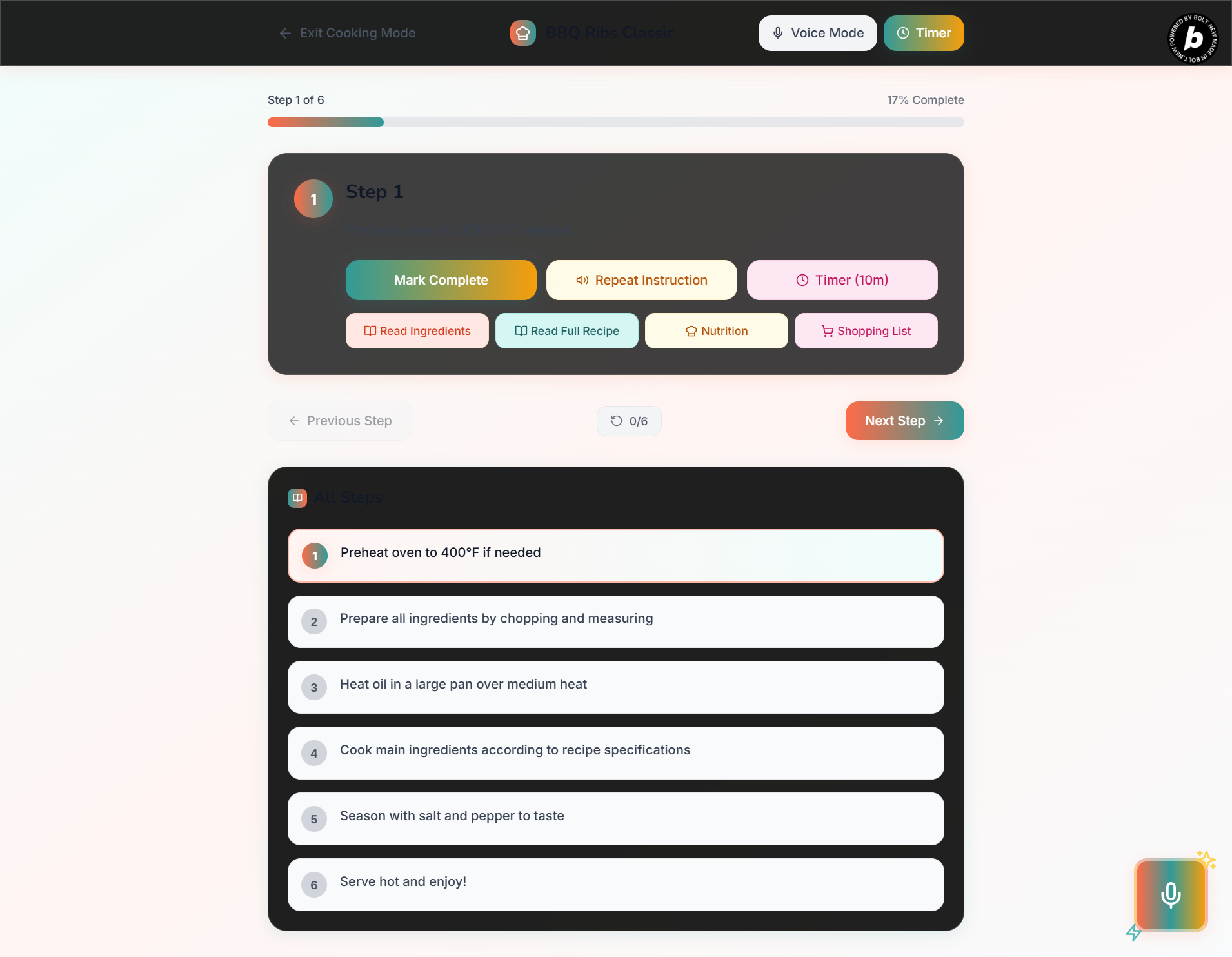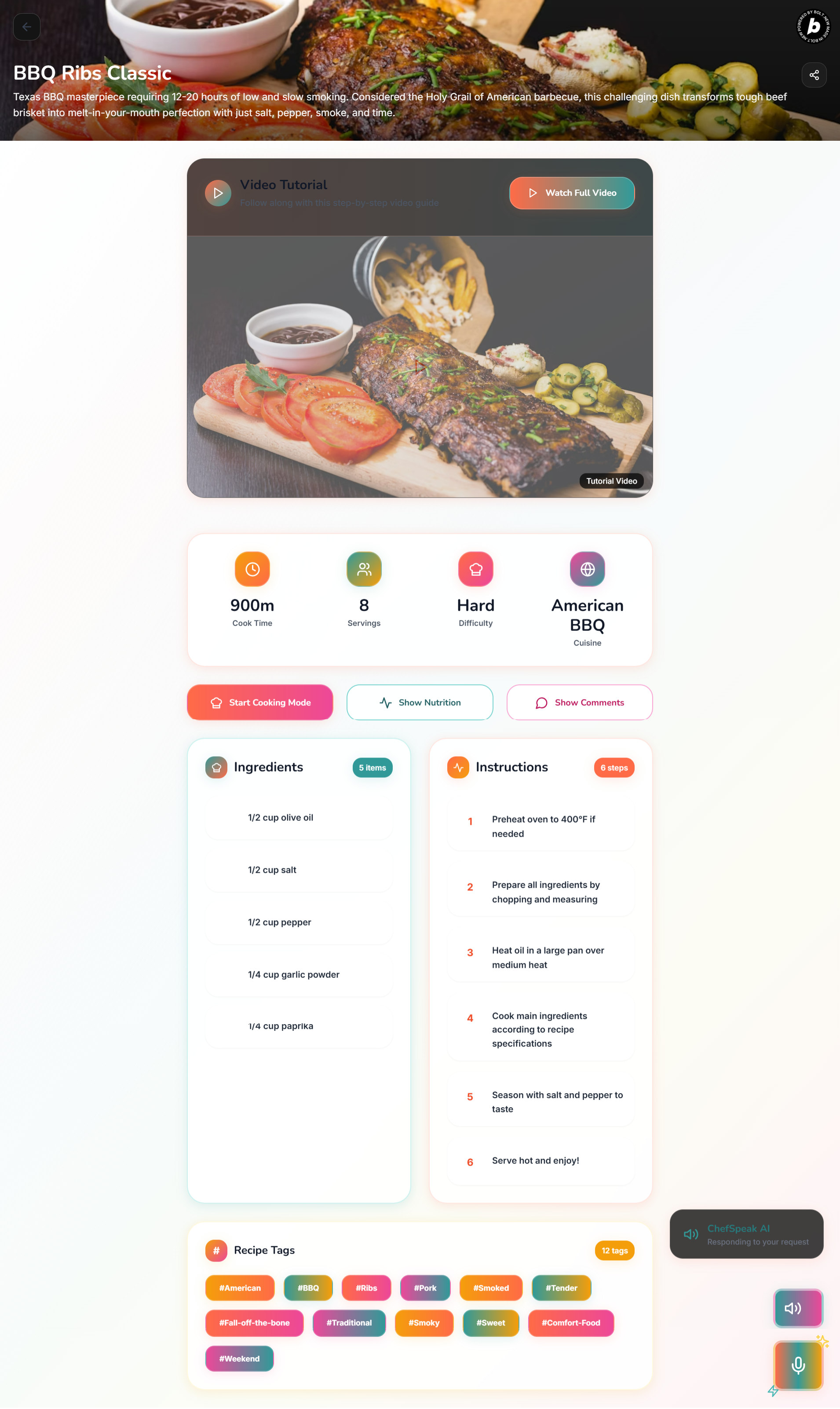 - 📖 Recipe Narration: Complete recipe reading with ingredients, instructions, and nutrition info