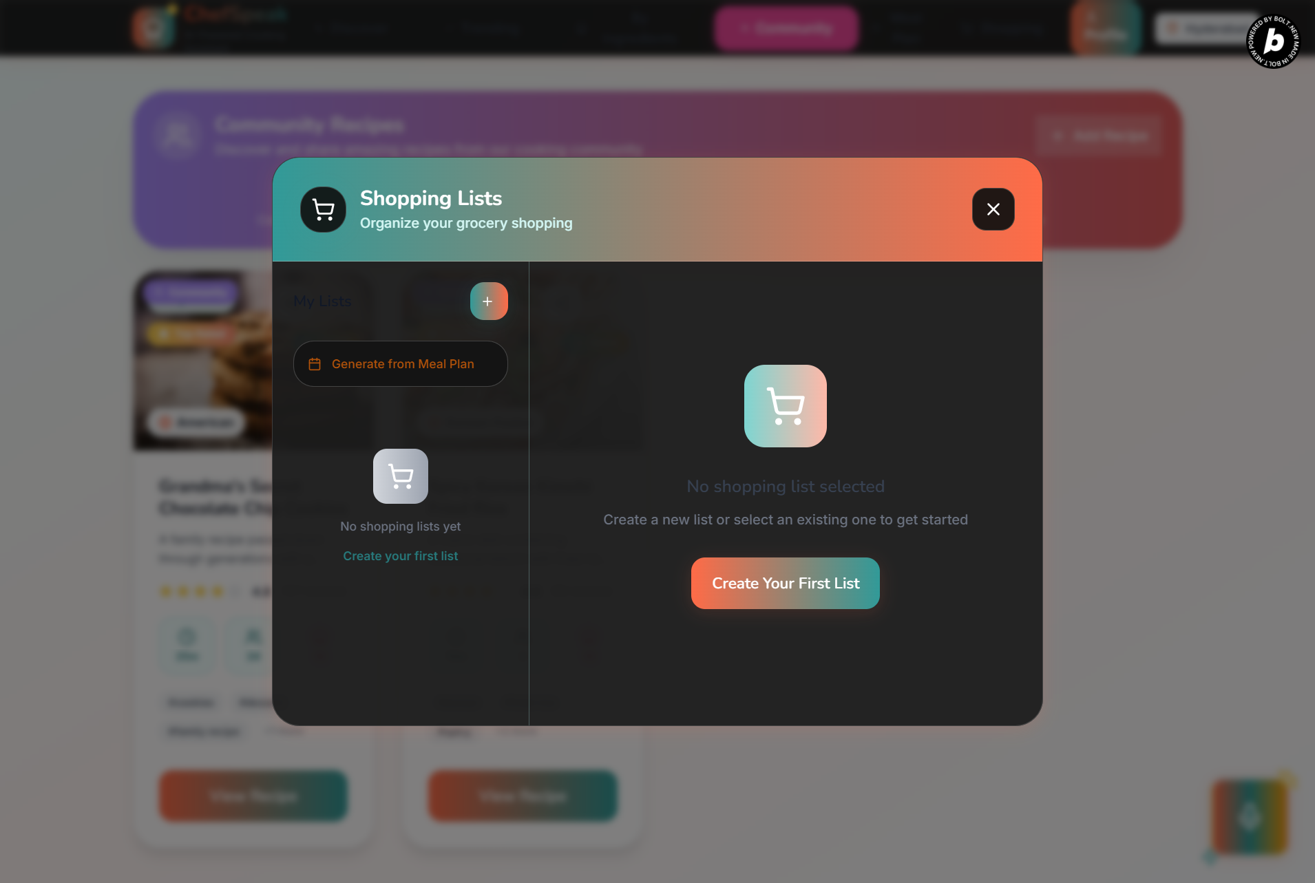 Challenge: Creating actual shopping lists, not just mock functionality.