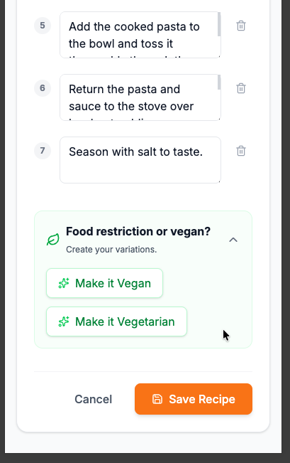 - creates a vegan recipe based on a recipe I saved,