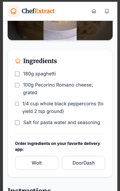 I am using the YouTube API for URLs that point to YouTube. Otherwise, the Gemini API takes care of it. Another use of Gemini 3 is parsing ingredient strings into a format that can be encoded and used to open the ingredient's page on the selected delivery app (I also tried parsing libraries, but the result wasn't good enough).