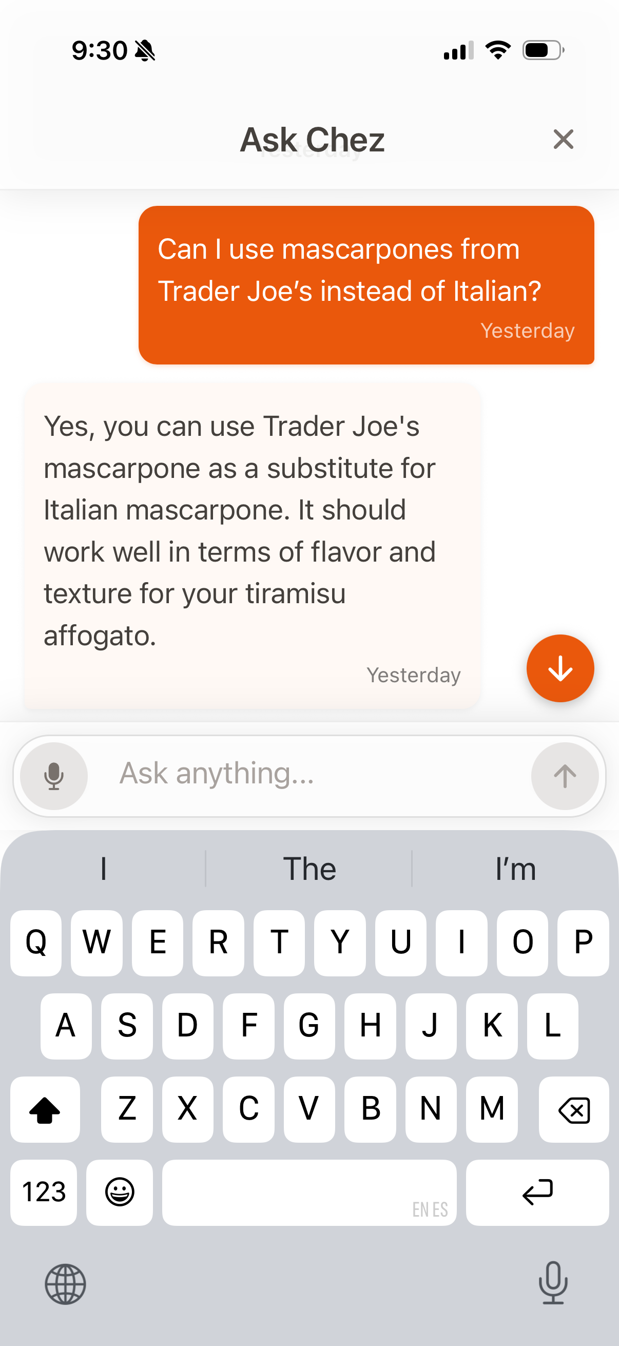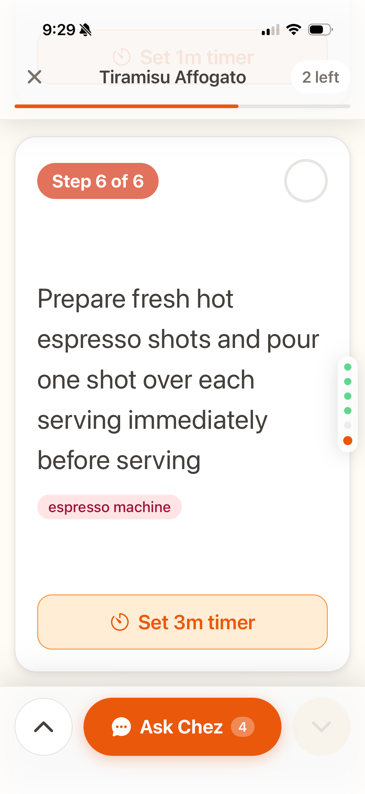 Ask Chez anything mid-cook. It knows the recipe and your preferences and learnings.