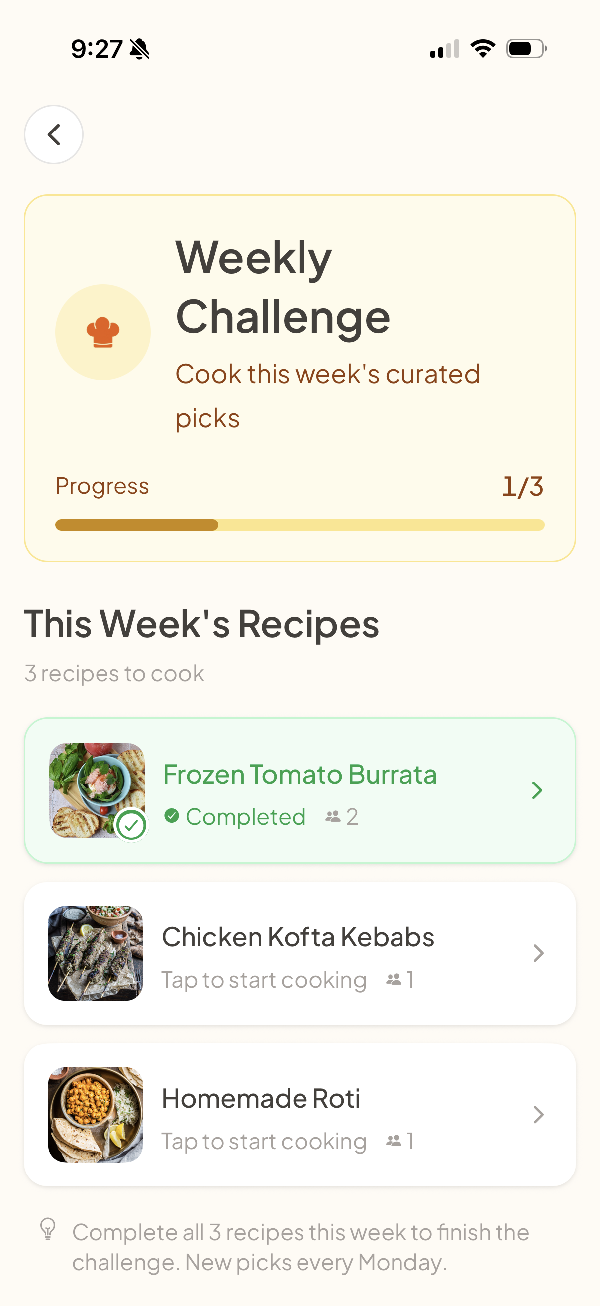- Challenge - Weekly curated recipes from creators push you to try something new.