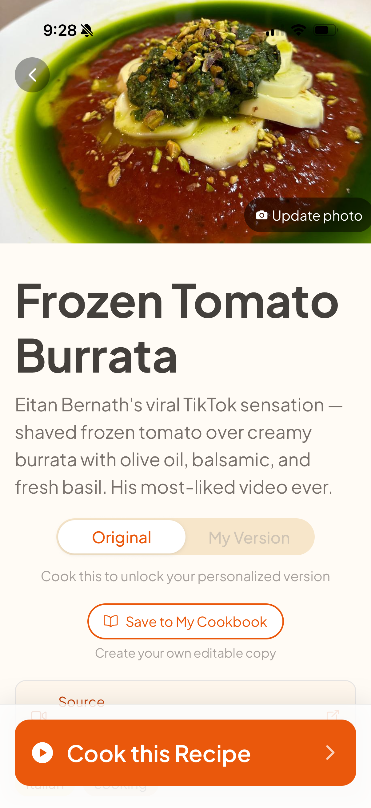 A recipe imported from TikTok, ready to cook or add to your grocery list.