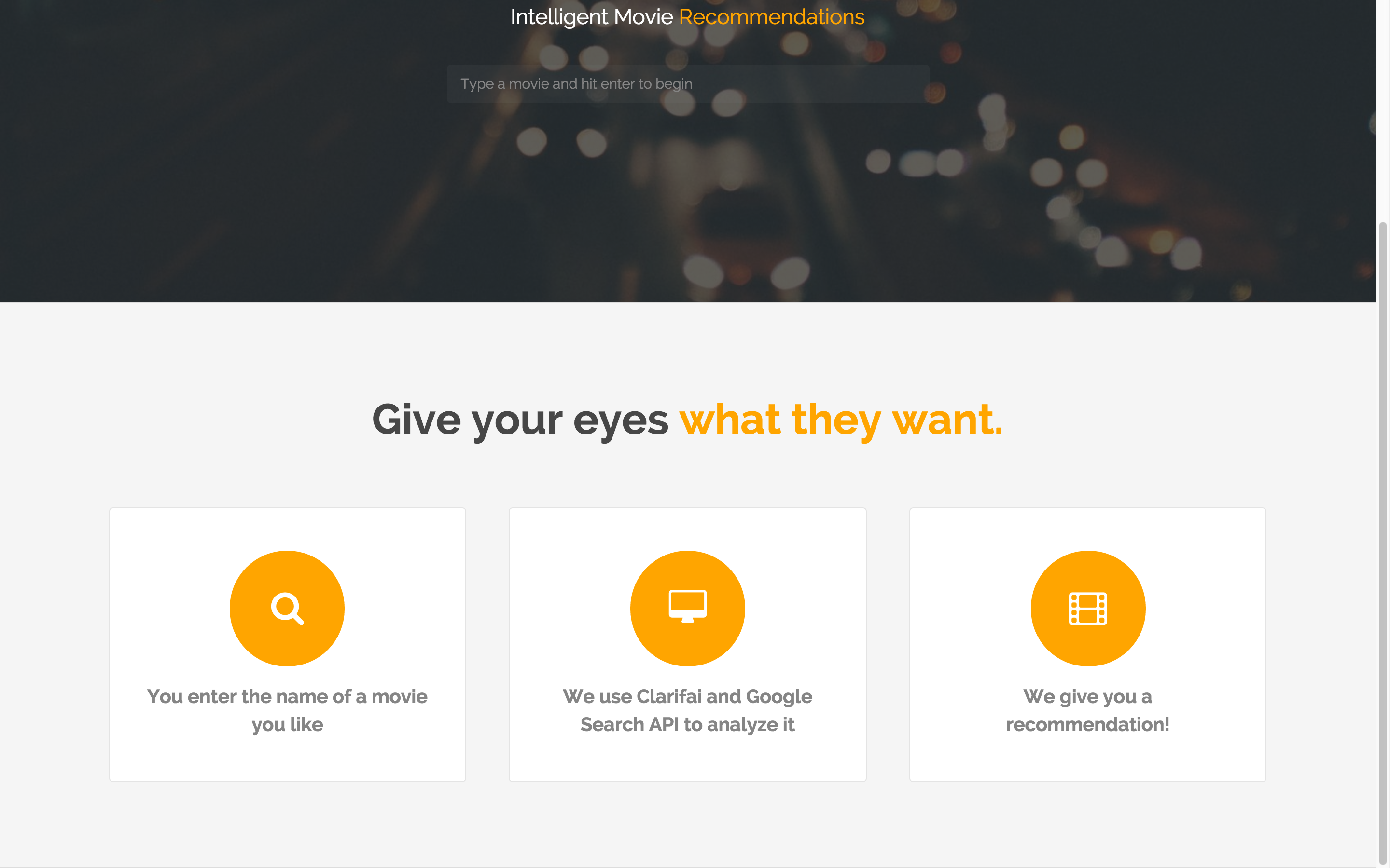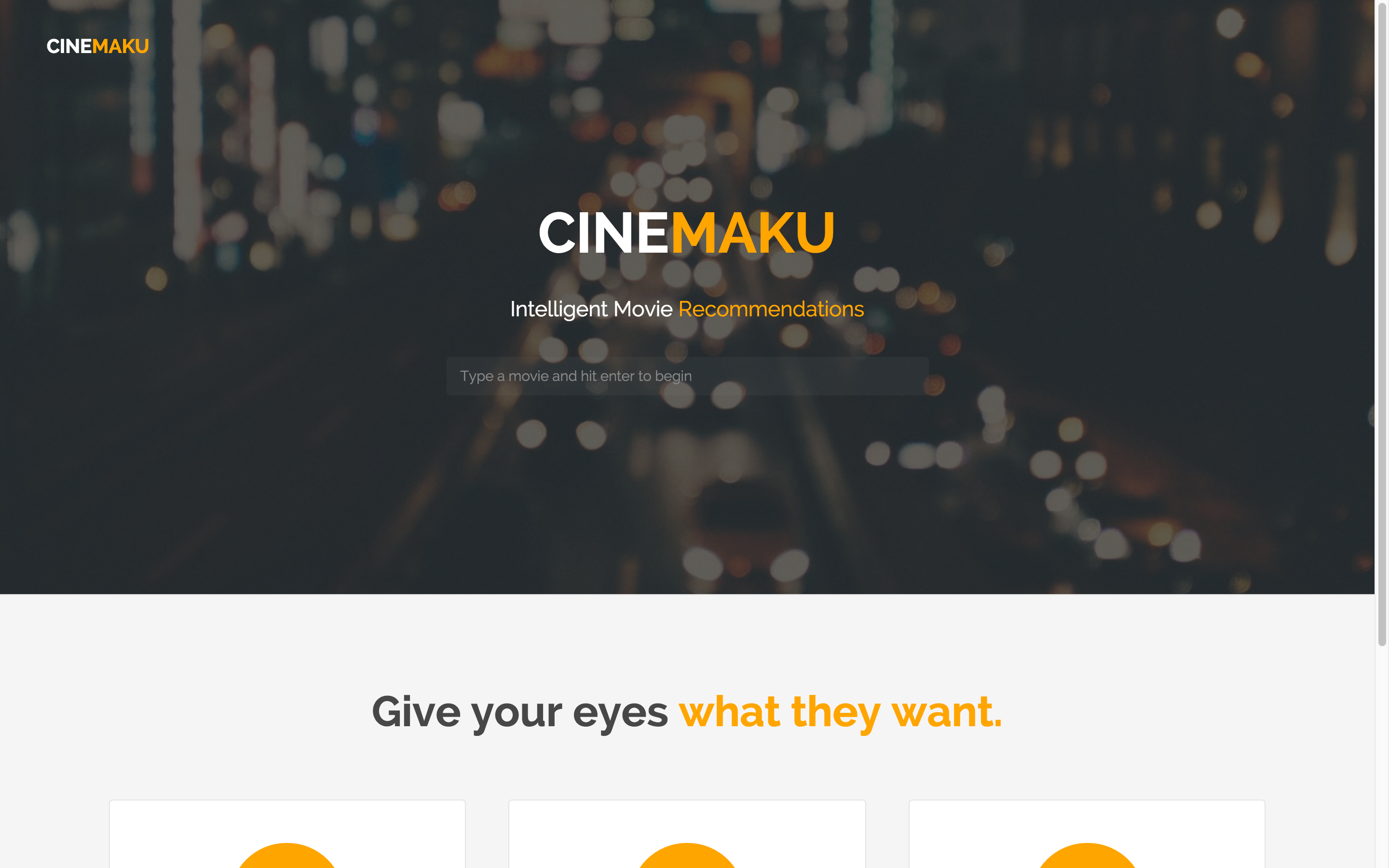 Cinemaku derives its name from cinema and 'maku', the Japanese term for 'recommendation'. We were inspired to create this product after noticing an alarming underappreciation for the visual aspects of film. We believe that elegant cinematography is, at its core, the art of creating beautiful motion pictures. Cinemaku aims to fundamentally alter the way movies are appreciated in the current day, by returning viewers to the roots of film.