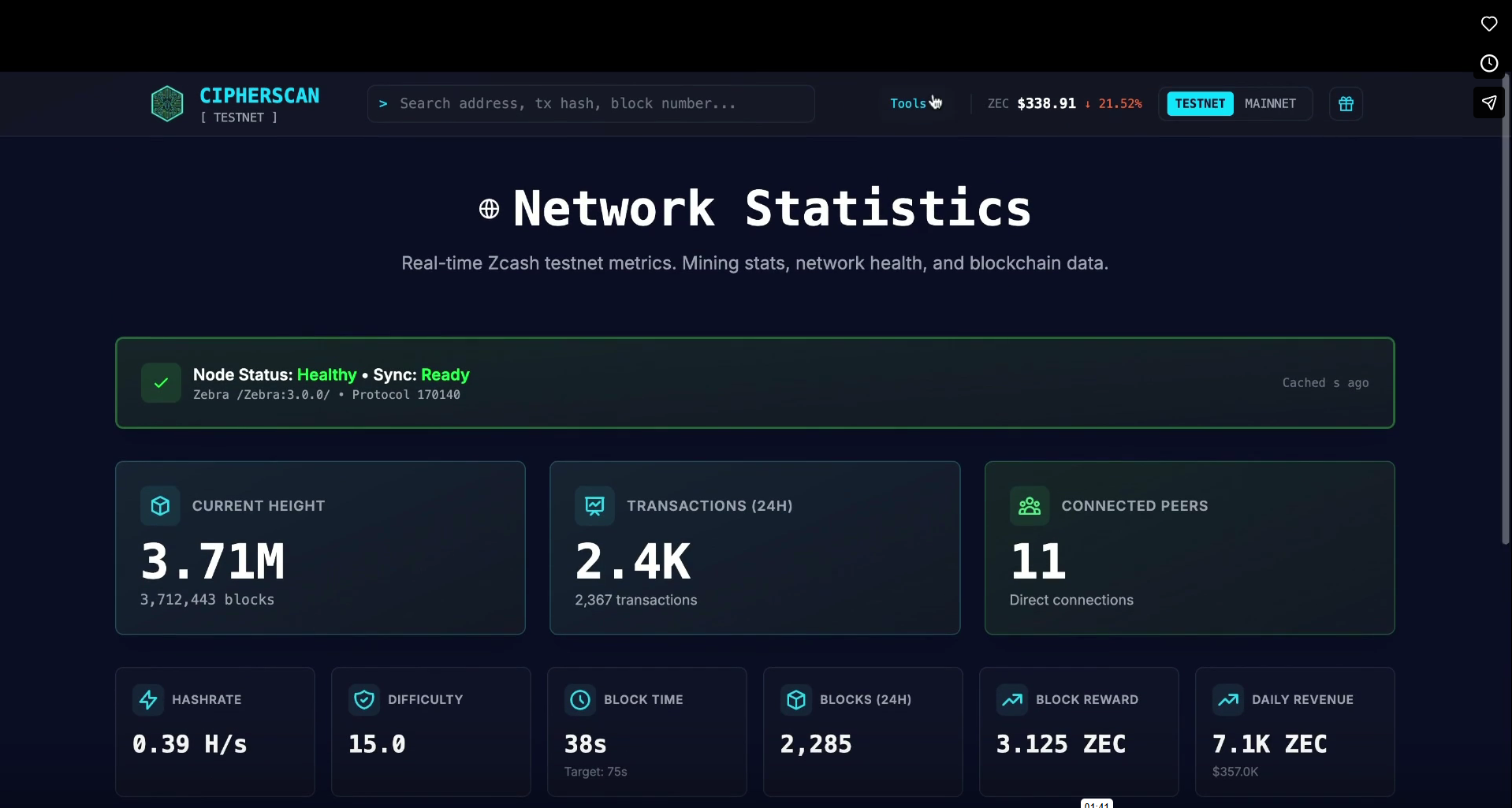 CipherScan is a custom Zcash blockchain explorer built to improve transparency without sacrificing privacy.