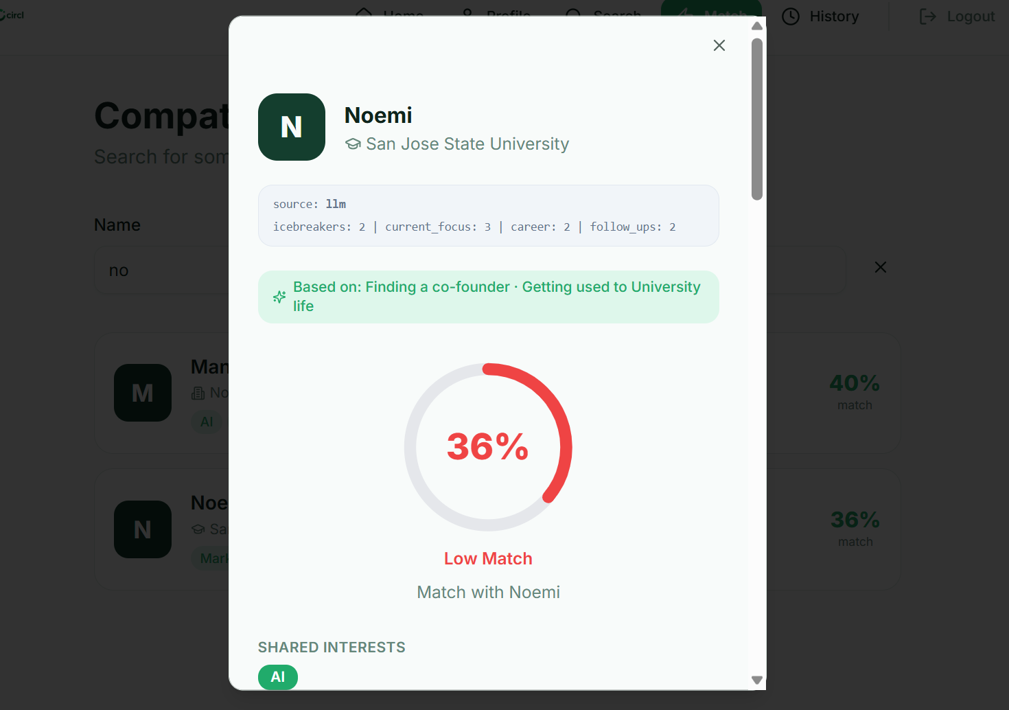 Our next step is to test Circl in real-world settings. We plan to launch a beta version at the SJSU Career Fair and gather feedback from early users. From there, we aim to expand by partnering with university career centers across the U.S., making meaningful networking accessible to students everywhere.