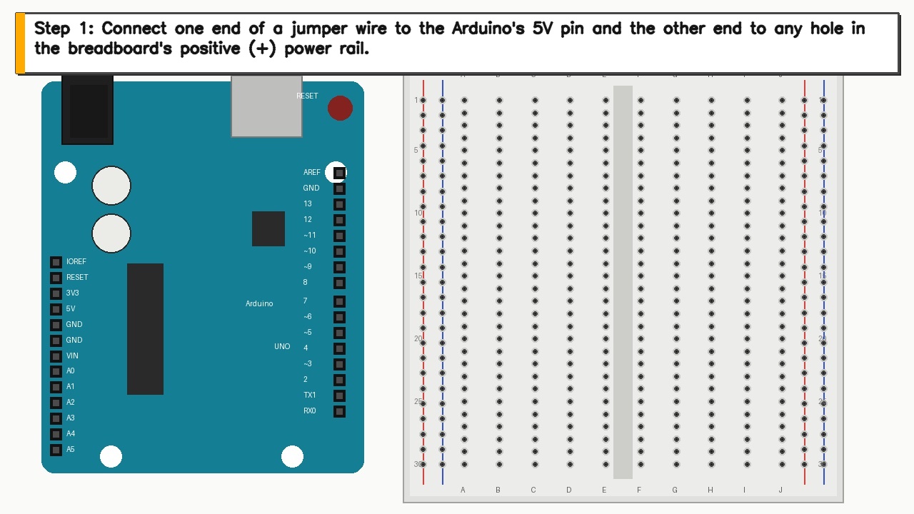 - Guides you visually — annotates an Arduino and breadboard with arrows, highlighted holes, and labels directly on the frontend Breadboard Layout