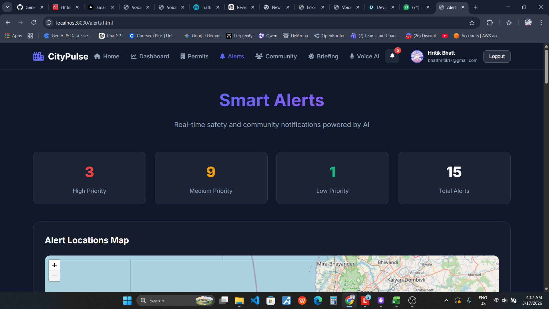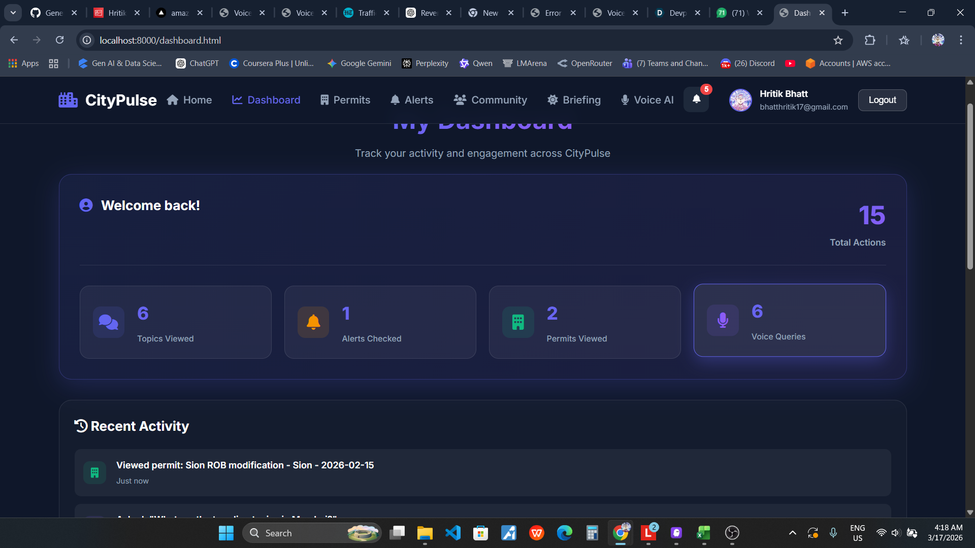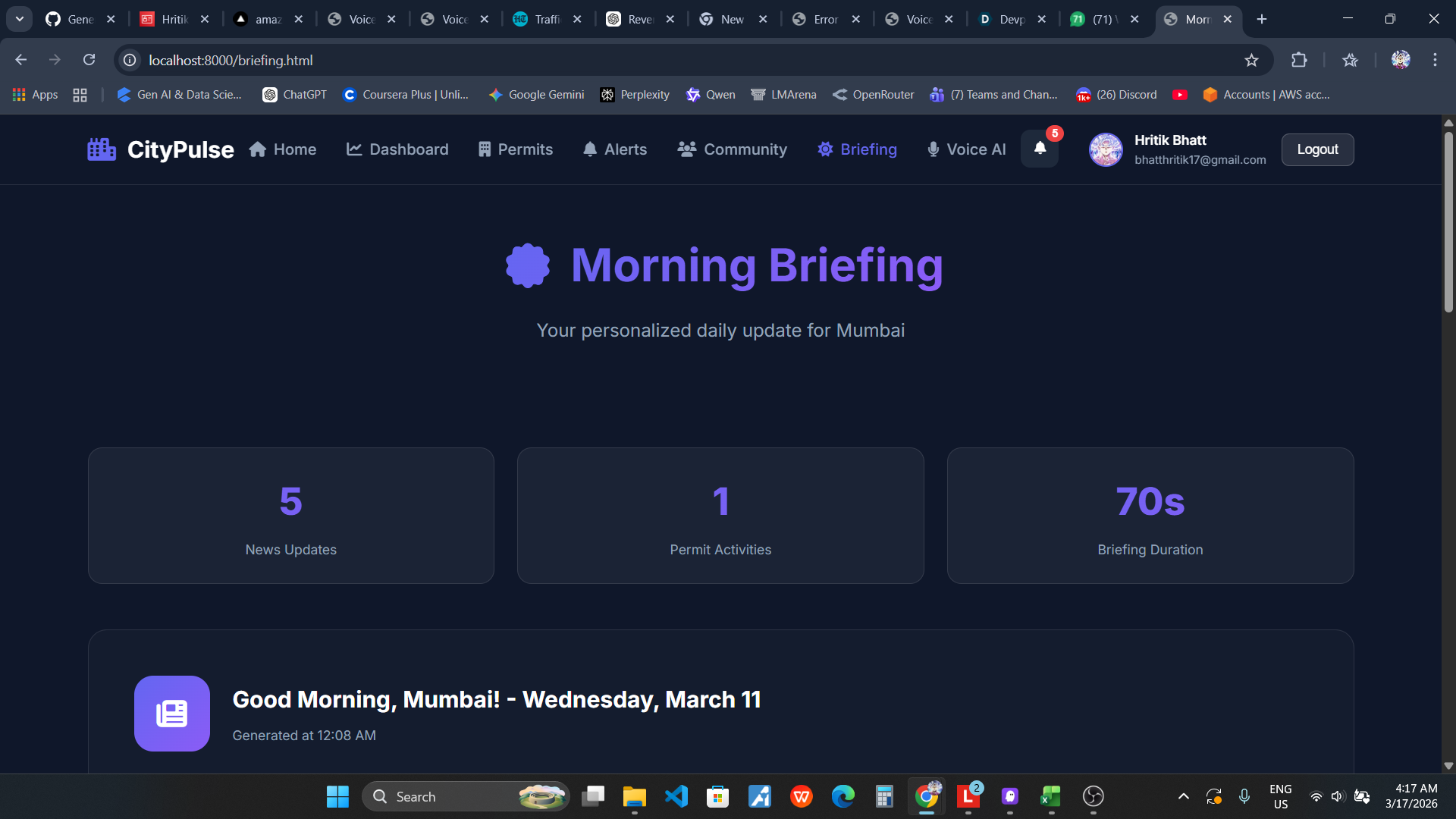 Living in Mumbai, I witnessed firsthand how citizens struggle to stay informed about their neighborhood. Important information about construction permits, safety alerts, and community issues is scattered across multiple government portals, social media, and news sources. Most people only discover critical changes in their area when it's too late - a new construction blocking their view, a road closure disrupting their commute, or a safety concern that could have been avoided.