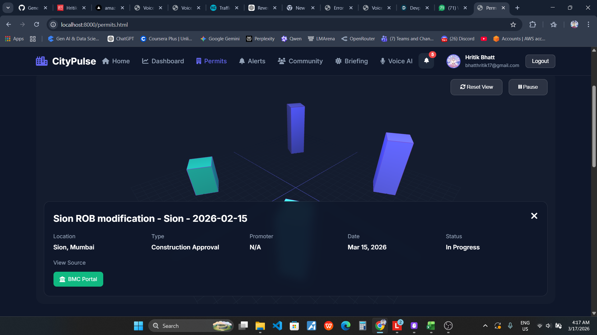 - Interactive 3D view of construction permits across Mumbai