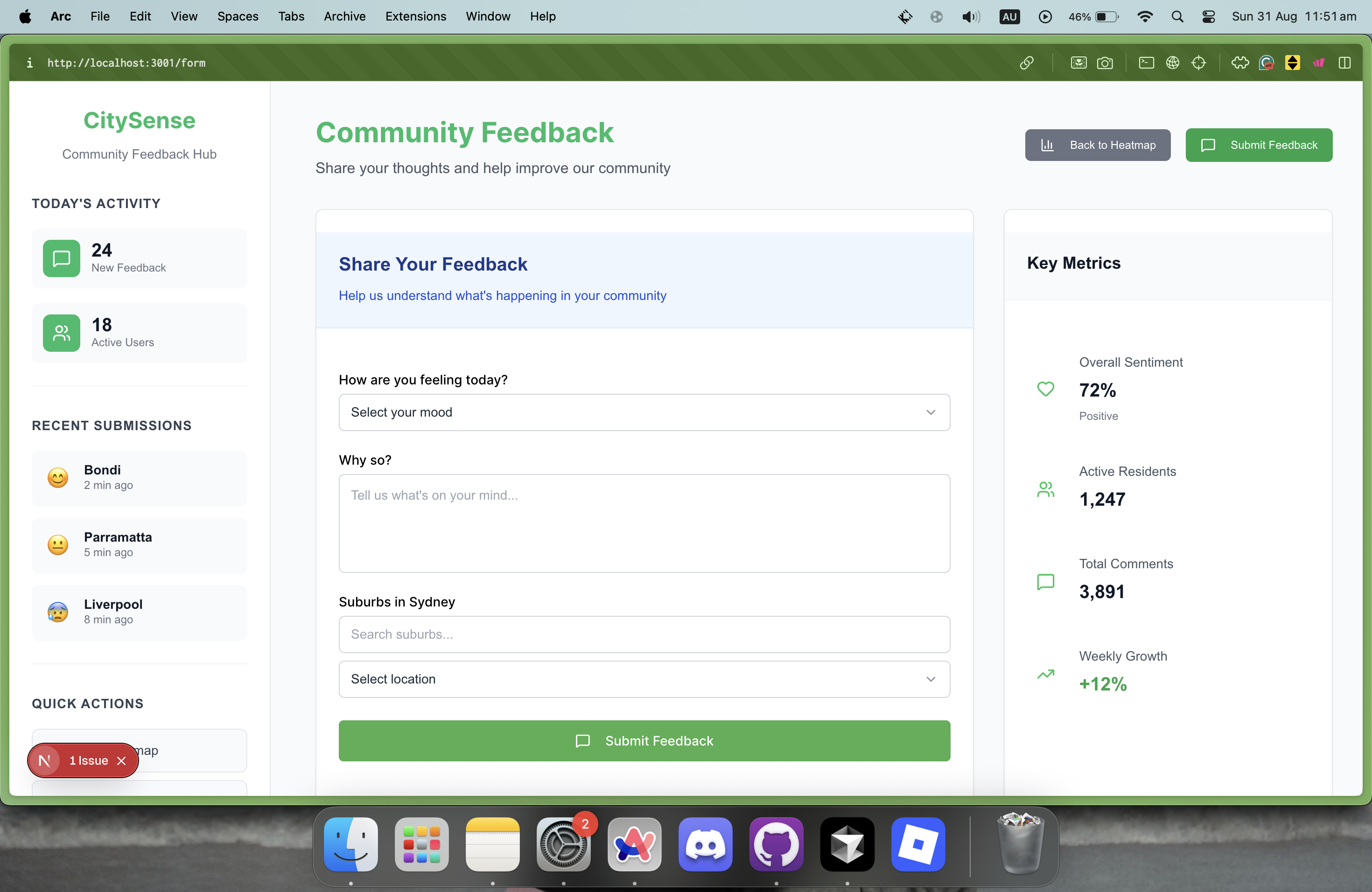 Having encountered problems in our daily life, CitySense was created with the mission to provide a forum for residents around Sydney to express their concerns about issues in their neighborhoods. We wanted to help newcomers and stay-at-home residents stay informed about what’s happening around their neighborhood.