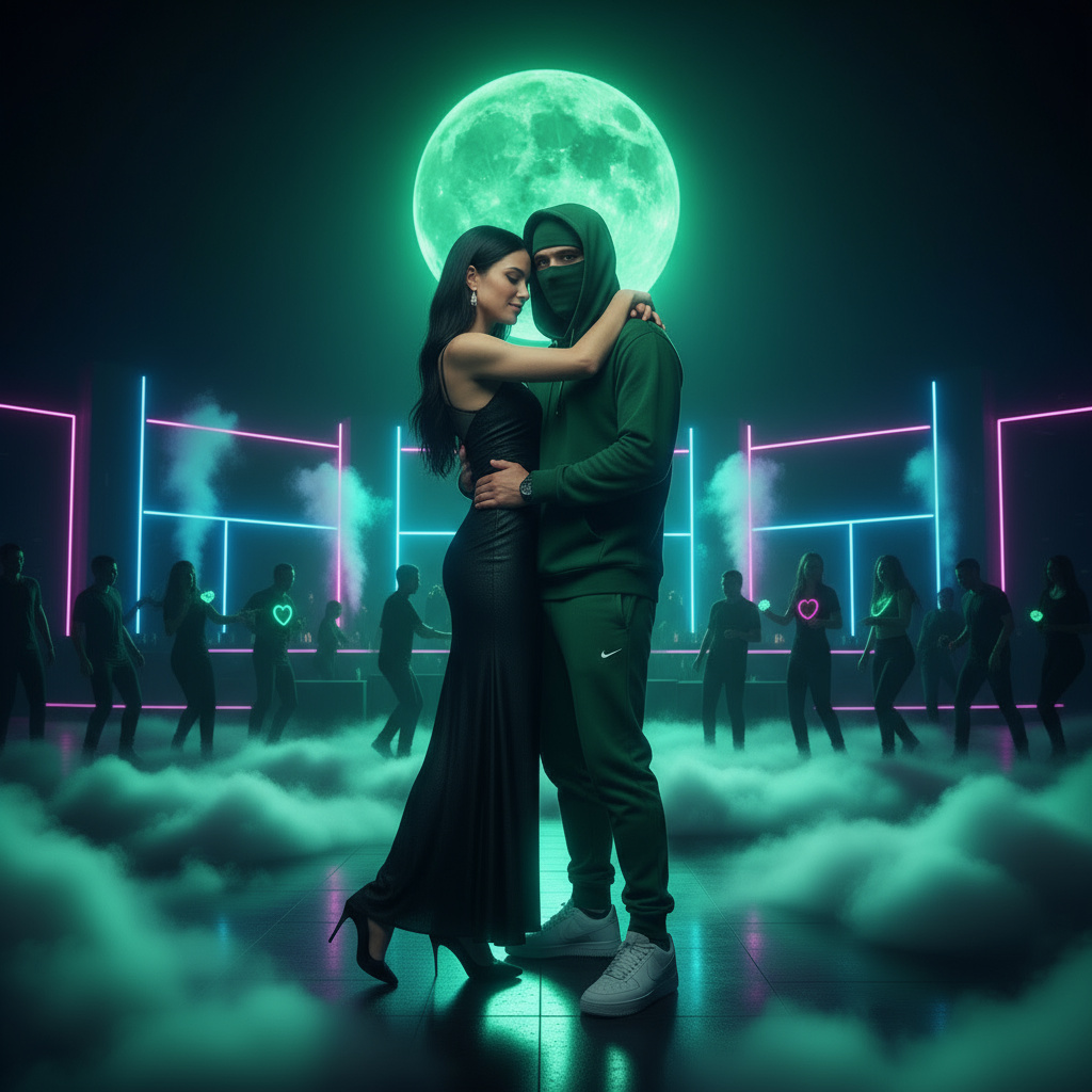 La Fête was born from the idea of transforming a night into a myth. The inspiration came from paradoxes — listening with the eyes, seeing with the ears — and from the symbolism of colors: green as a mask of poison, white as good, and black as evil. The narrative reflects how desire, excess, and shadows can merge into one vision under the green moon.