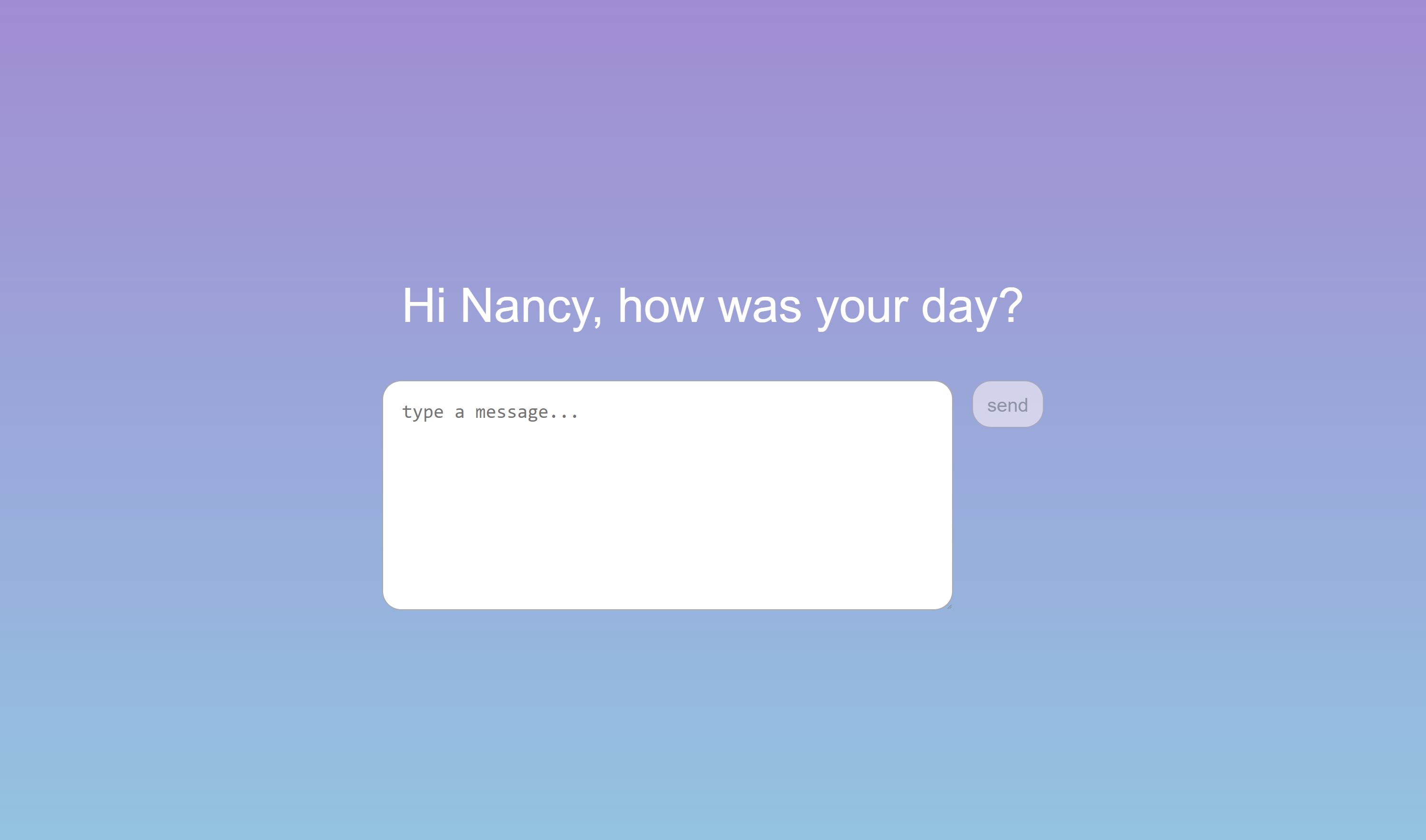 We wanted to use speech-to-text so as to reach an even broader seniors' market, but we ran into technical difficulties with streaming audio from the browser in a consistent way. As a result, we chose simply to have a text-based conversation.