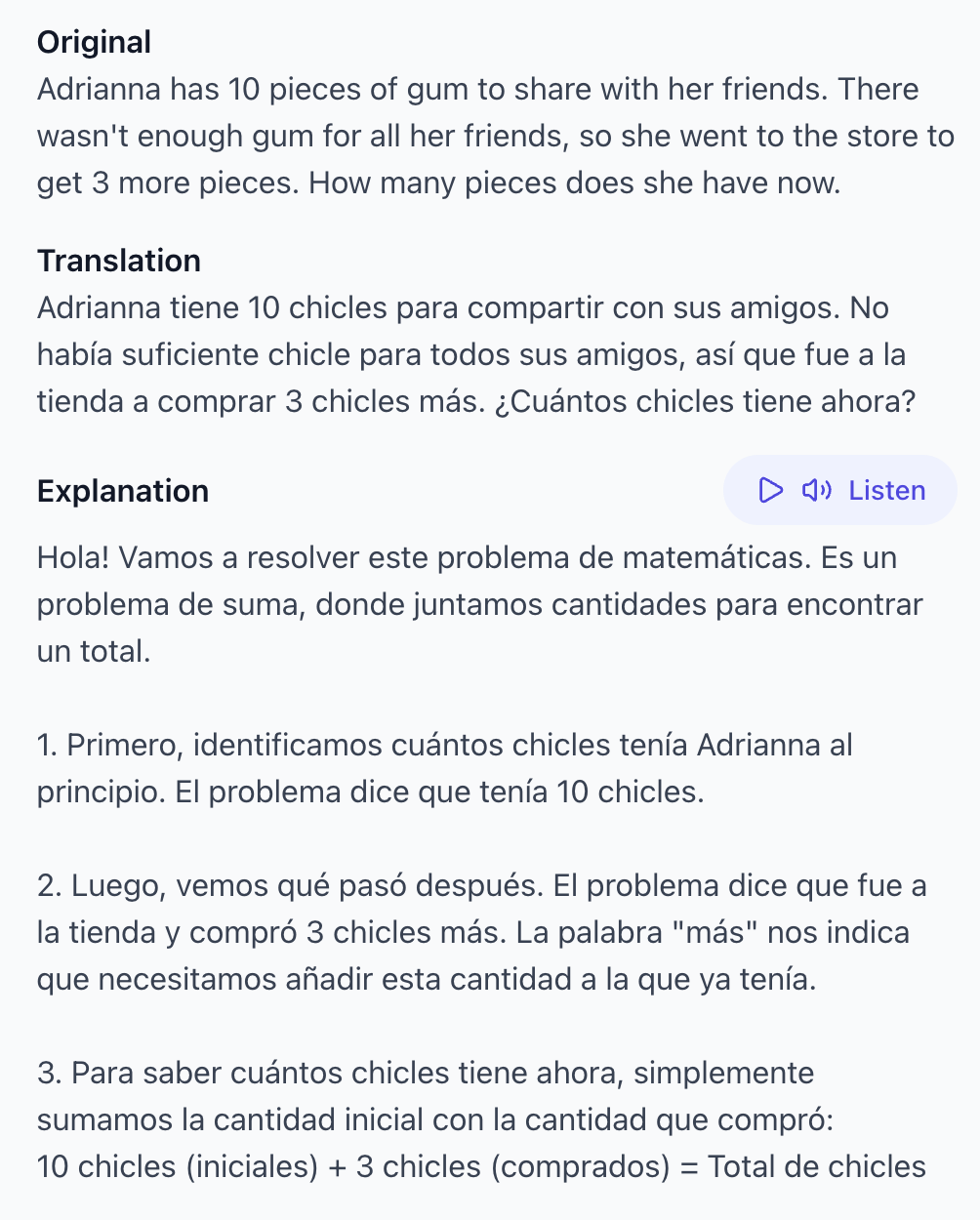 ✅ Grade-level adaptation: The same math problem gets explained differently to a 4th grader vs a high school student