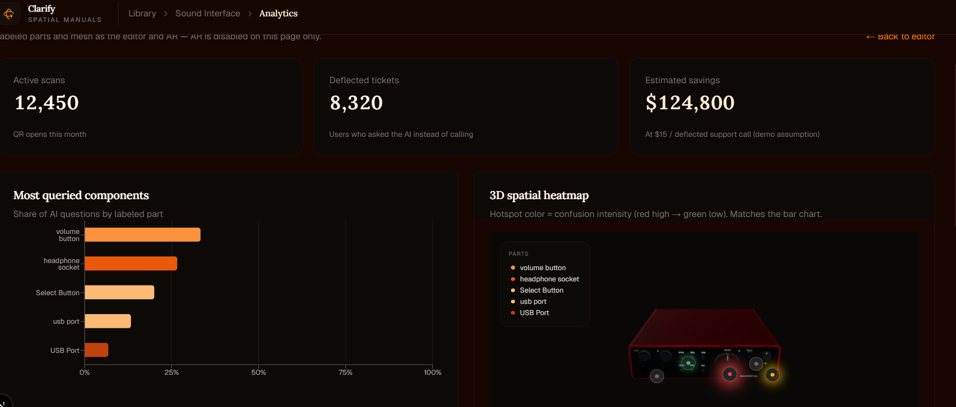 Clarify turns dead manuals into live AR agents. We auto-generate 3D twins from photos and bind PDFs to Voice AI. Users ask, exact parts glow in WebXR. Zero 3D modeling. Massive enterprise ROI.