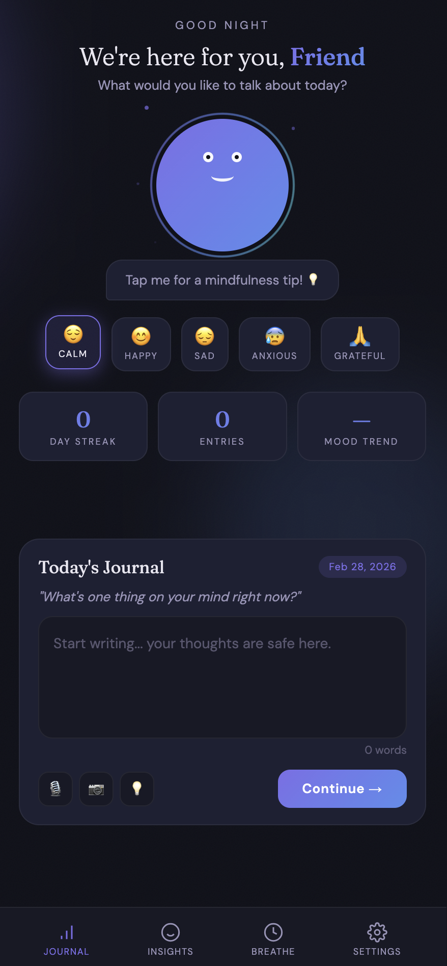The isolation of people during the COVID pandemic and its negative mental impact on people, made us think of the importance of having someone to talk to about your day. However, recent popularity of LLM models has surfaced cases of unhealthy attachment of humans to language models. We decided to tackle these problems. Our goal was clear: Create an app as an assistant, which will make you smile, but keep it simple, and without engaging in deep conversation - just letting you explain your thoughts. When our models detect that you might need help, we will suggest some ways to help you relax, like taking a breath, resting more or going for a walk in nature. But when the issues persist, we will try to connect you with a mental health professional.