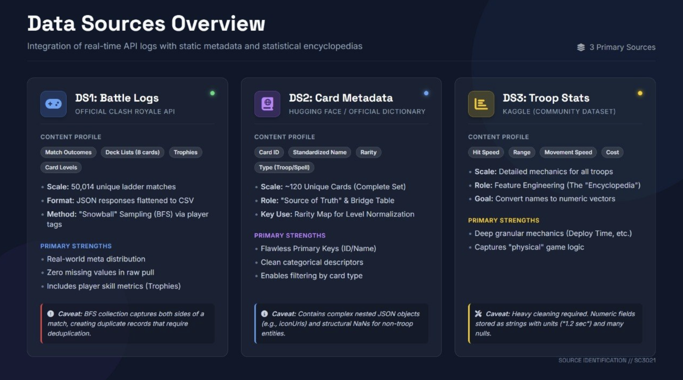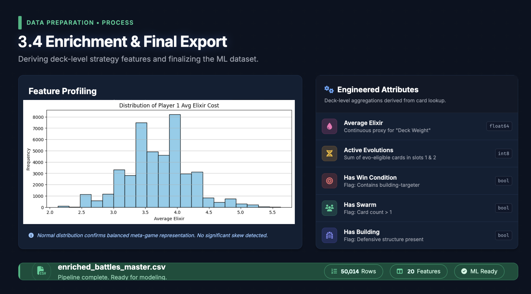 We enriched our filtered battle records with card metadata from Hugging Face and Kaggle to build a feature space that captured: