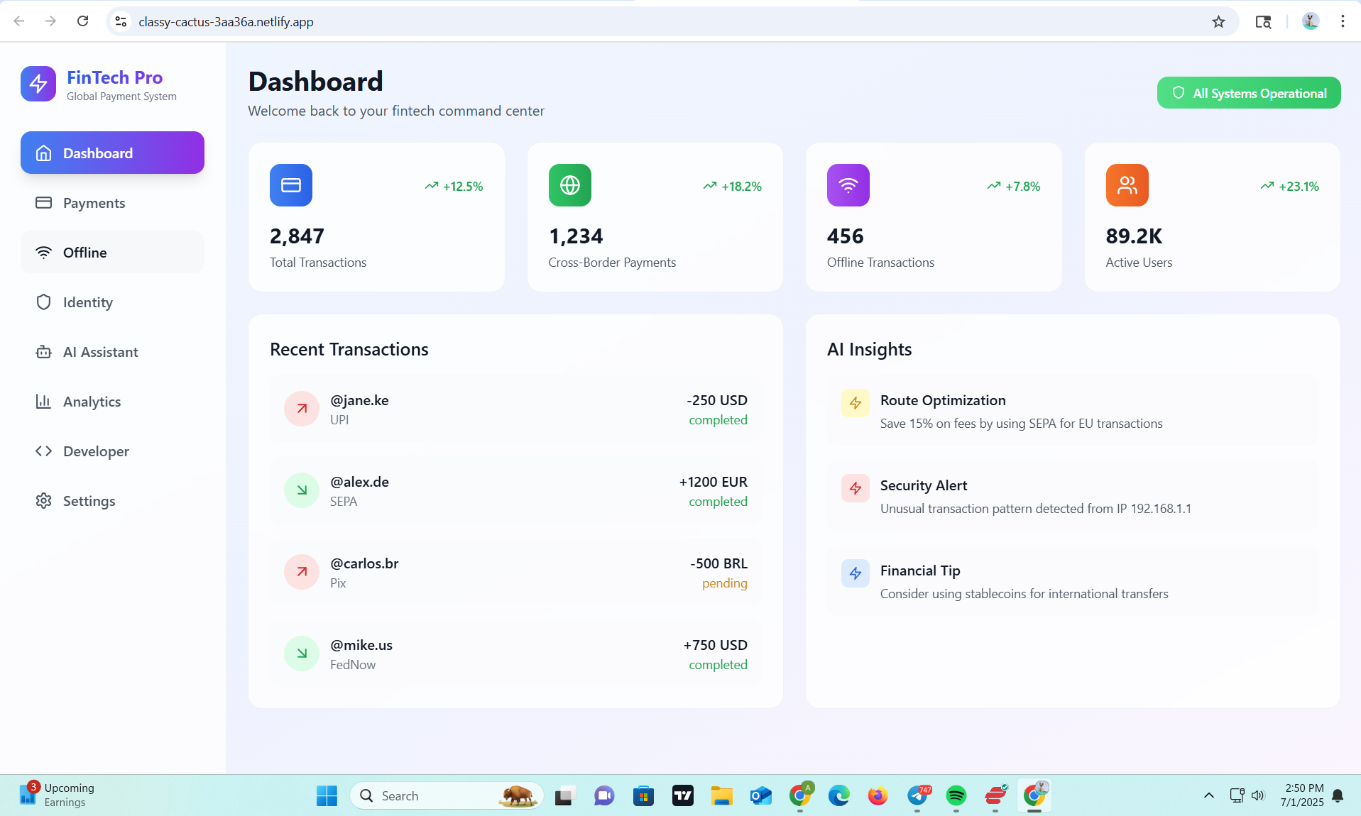 In a world where financial inclusion is still a dream for billions, and existing payment systems are fragmented, expensive, and unreliable, we asked ourselves: What if payments could flow like messages—borderless, instant, and smart? Classy Cactus was born to challenge the dominance of card-based systems and bring seamless, resilient, non-card payments to the global stage—built for everyone, everywhere.